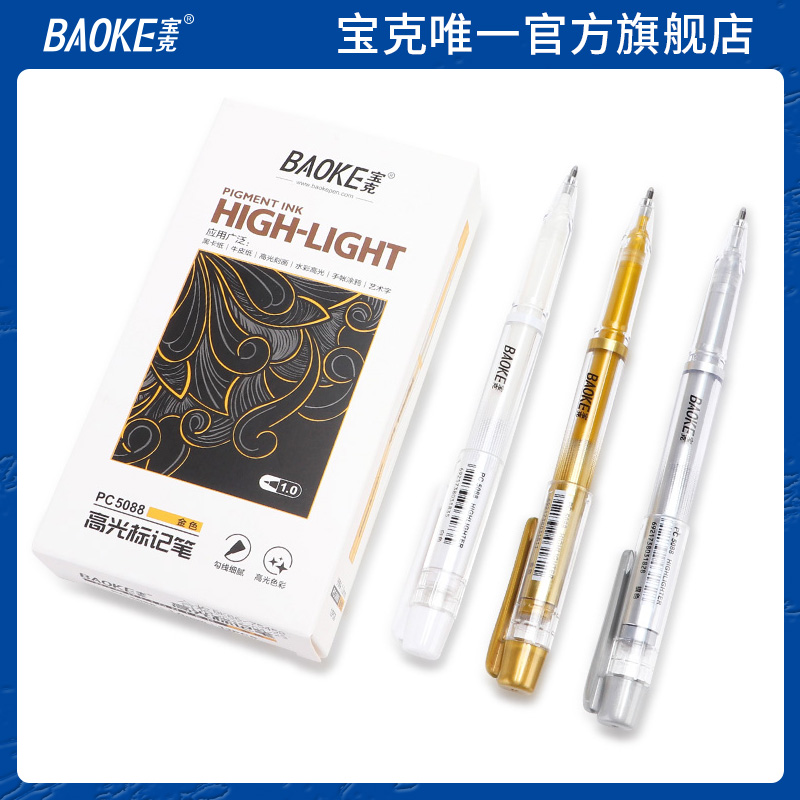 宝克(BAOKE)白色高光笔绘画笔1.0mm手绘漫画美术生油性白笔金色素描动漫设计银色勾线笔高光画笔马克记号笔