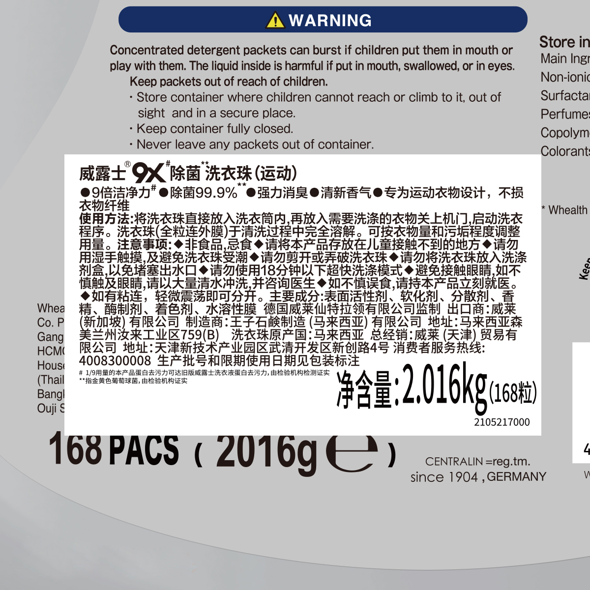 COSTCO开市客进口威露士9X除菌洗衣液消臭运动清洁洗衣凝珠168粒