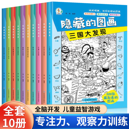 全10册 隐藏的图画 找东西的图册书捉迷藏幼儿园小学生高难度儿童3-6-10岁以上找不同专注力训练注意力趣味游戏公主恐龙四大本名著