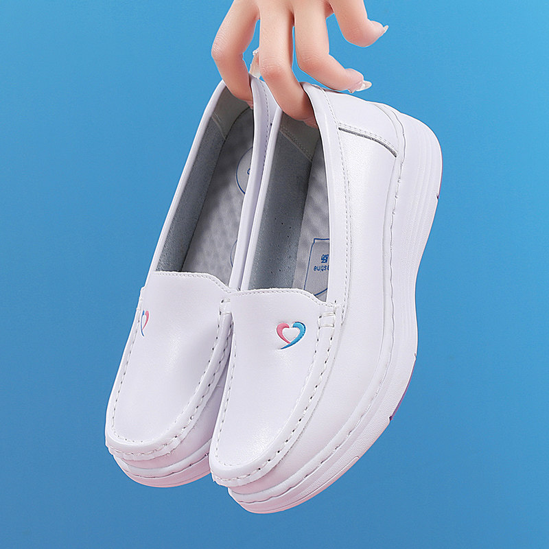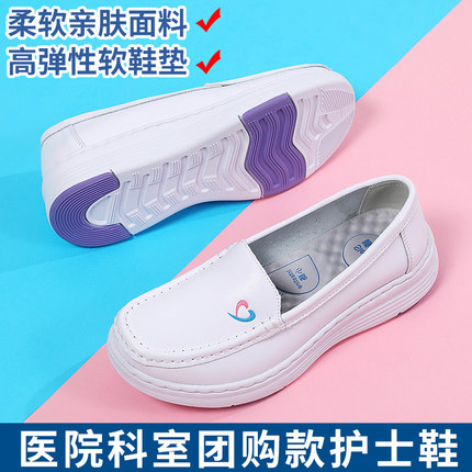四季款护士鞋女软底透气不累脚中跟浅口平底舒适防滑医护厚底单鞋