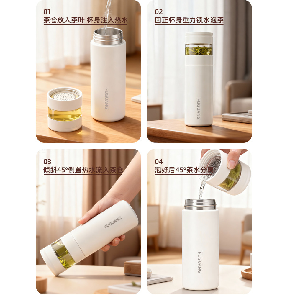 富光保温杯茶水分离316L内胆男款便携高档泡茶杯女水杯大容量定制