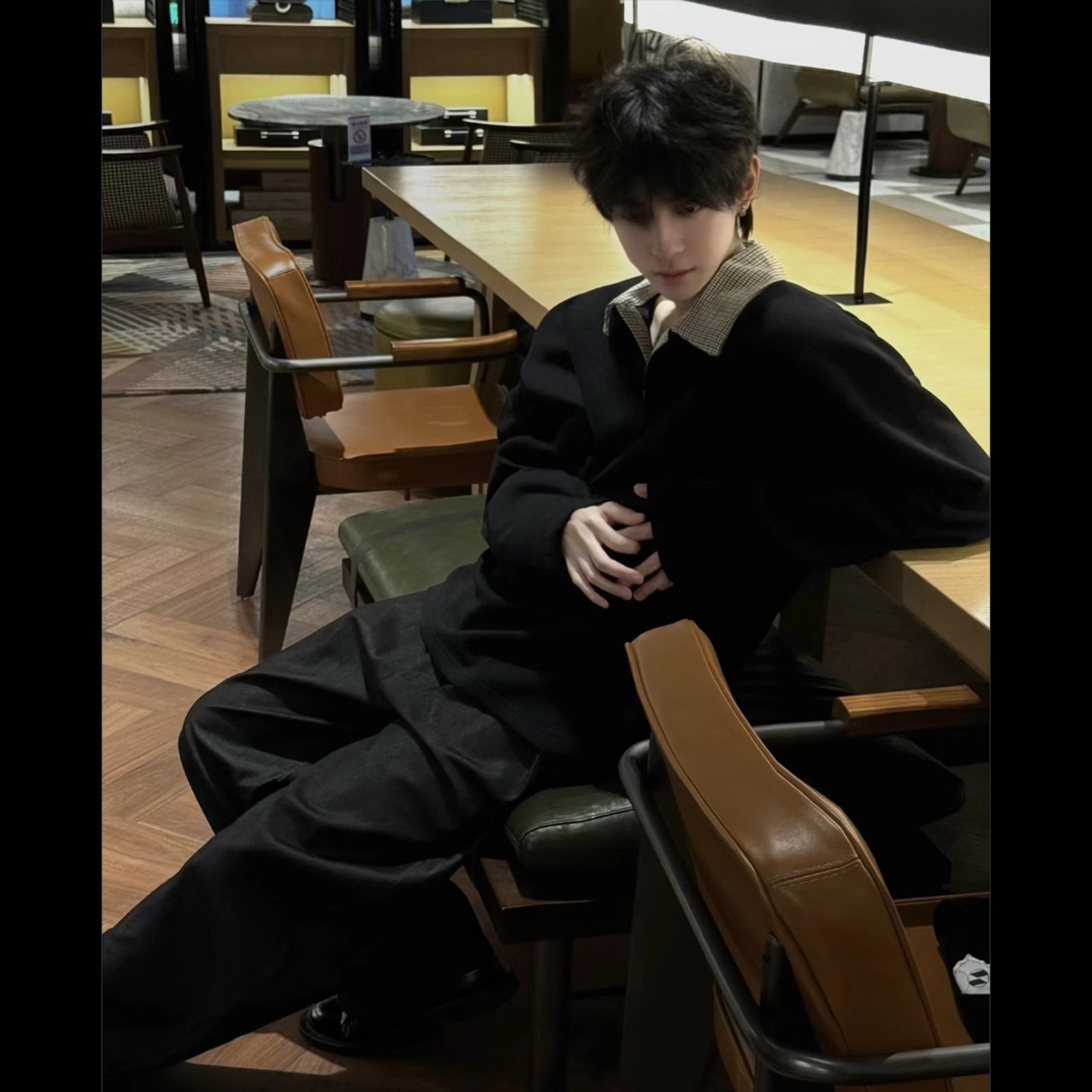 cleanfit千鸟格翻领polo衫男秋季