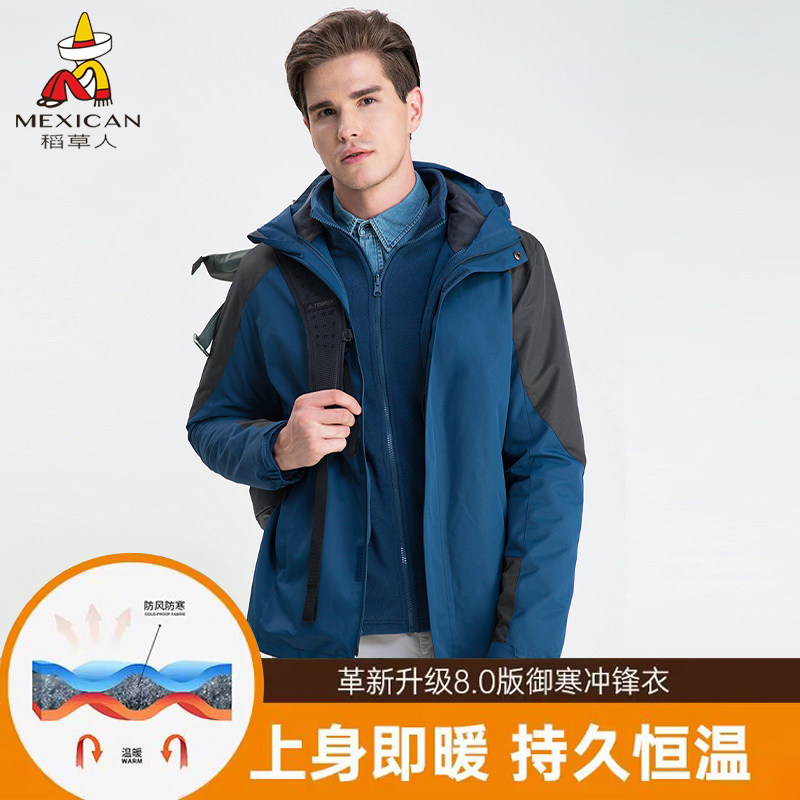 稻草人冲锋衣两件套三合一女外套男加绒加厚登山服秋冬户外滑雪服
