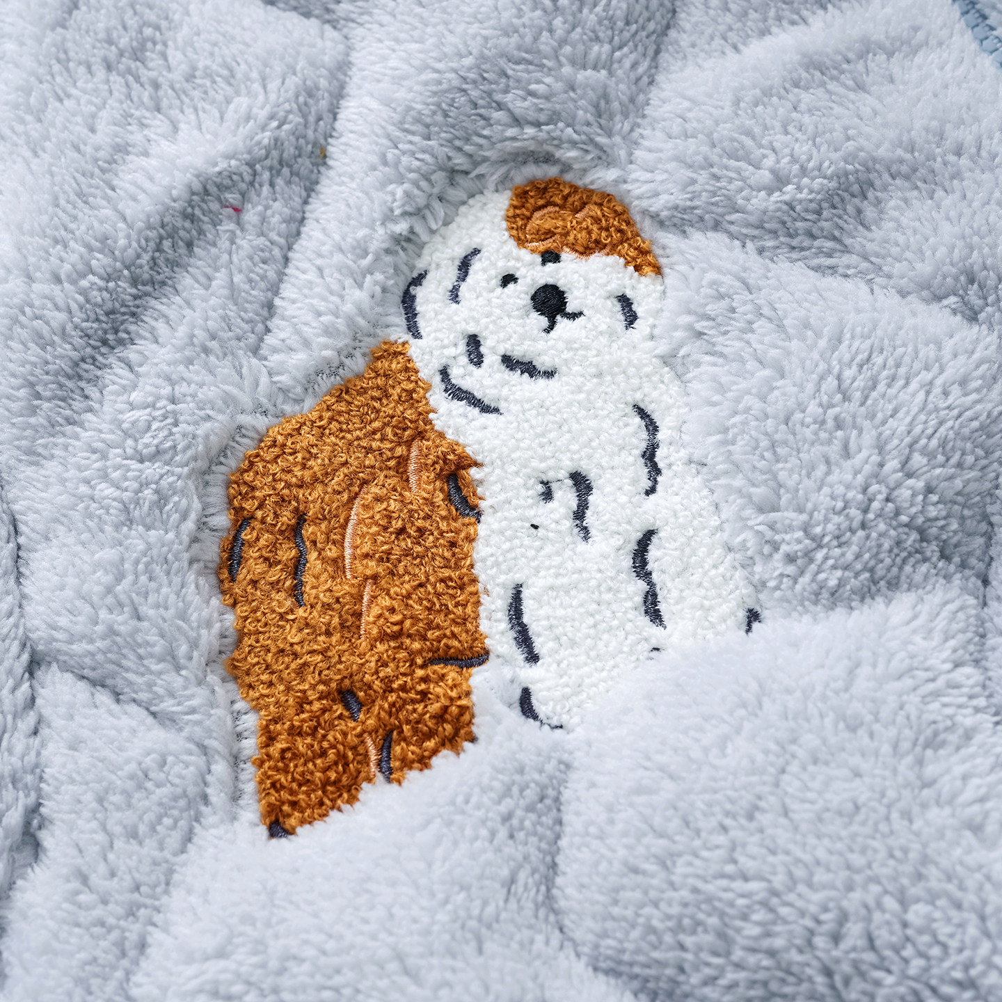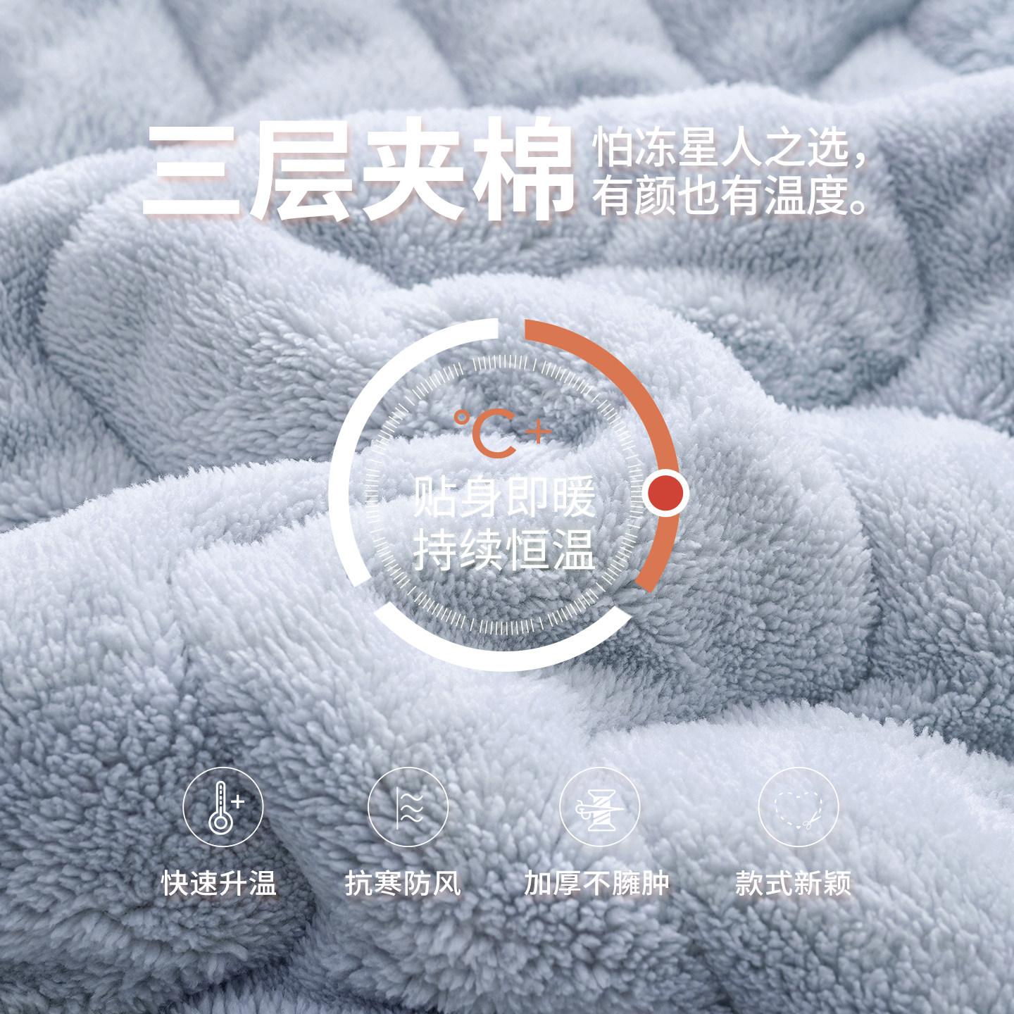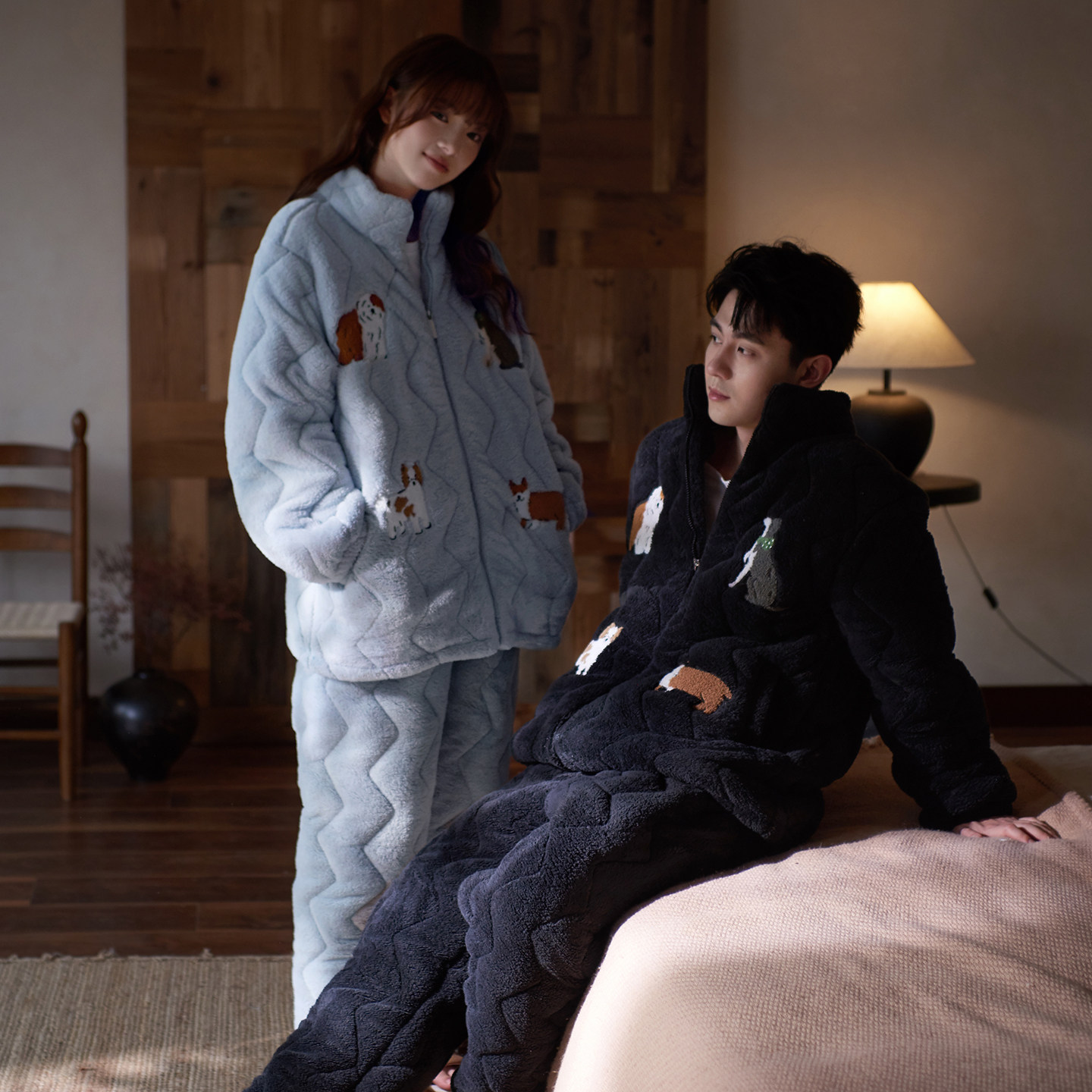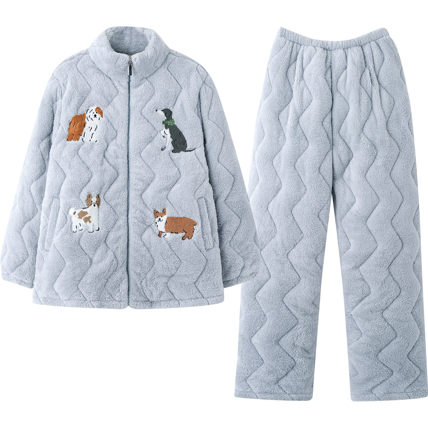 马克公主珊瑚绒夹棉情侣睡衣女冬季可爱小狗超厚三层拉链外套省服
