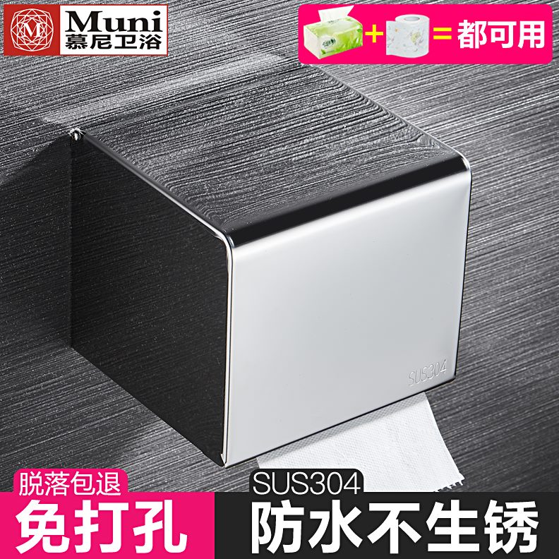 免打孔厕所纸巾盒防水4卫生间卷纸卫生纸盒30盒不锈钢擦手纸盒