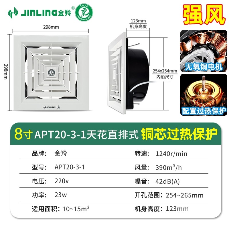 金羚直排天花排气扇吸顶吊顶换气力静音抽风机扇厨房卫生间强