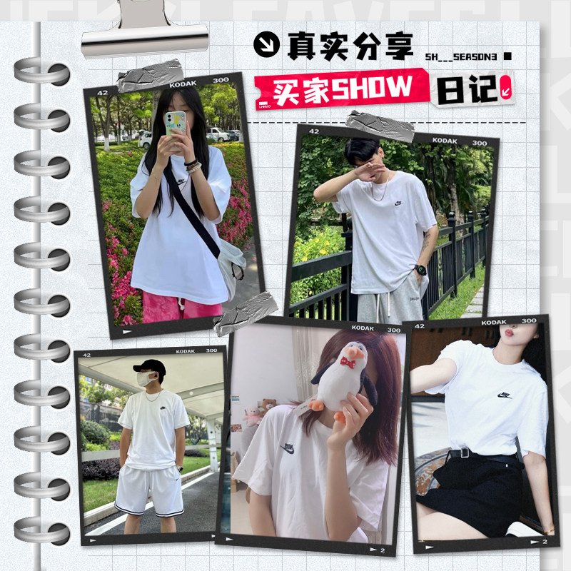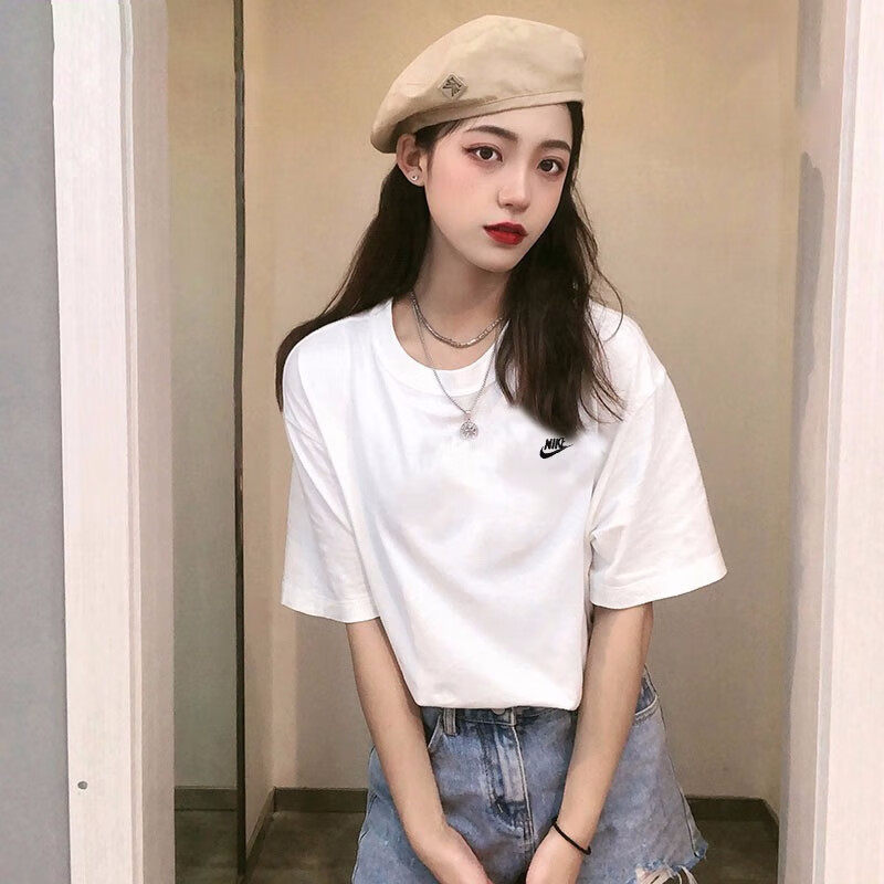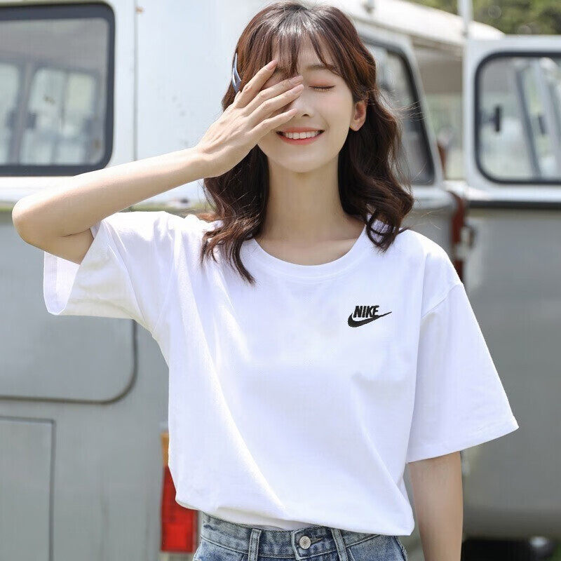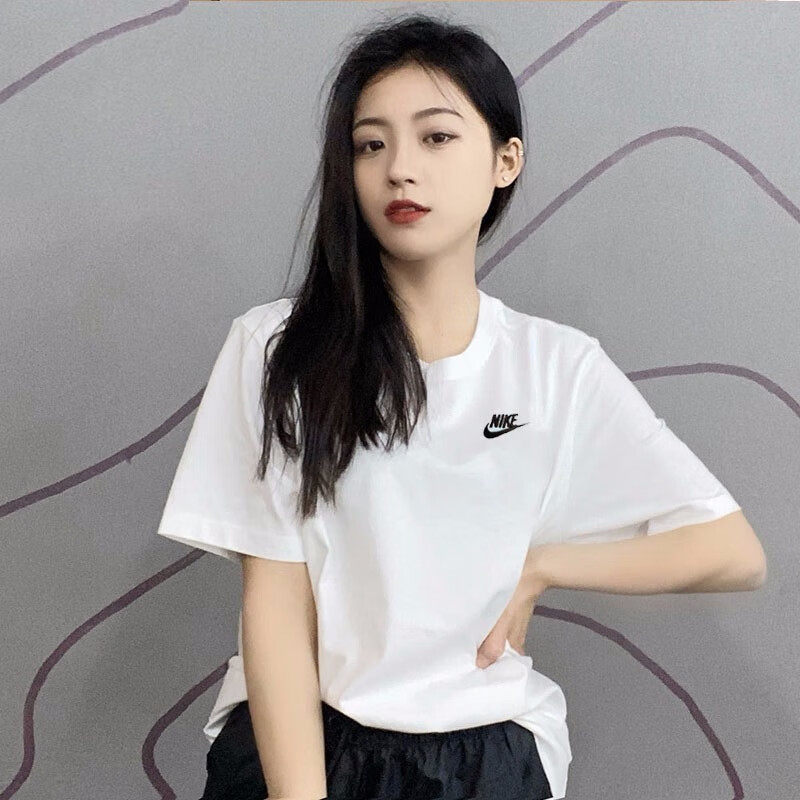 夏季新款短袖Nike耐克宽松大码女装纯棉五分袖透气上衣运动白T恤