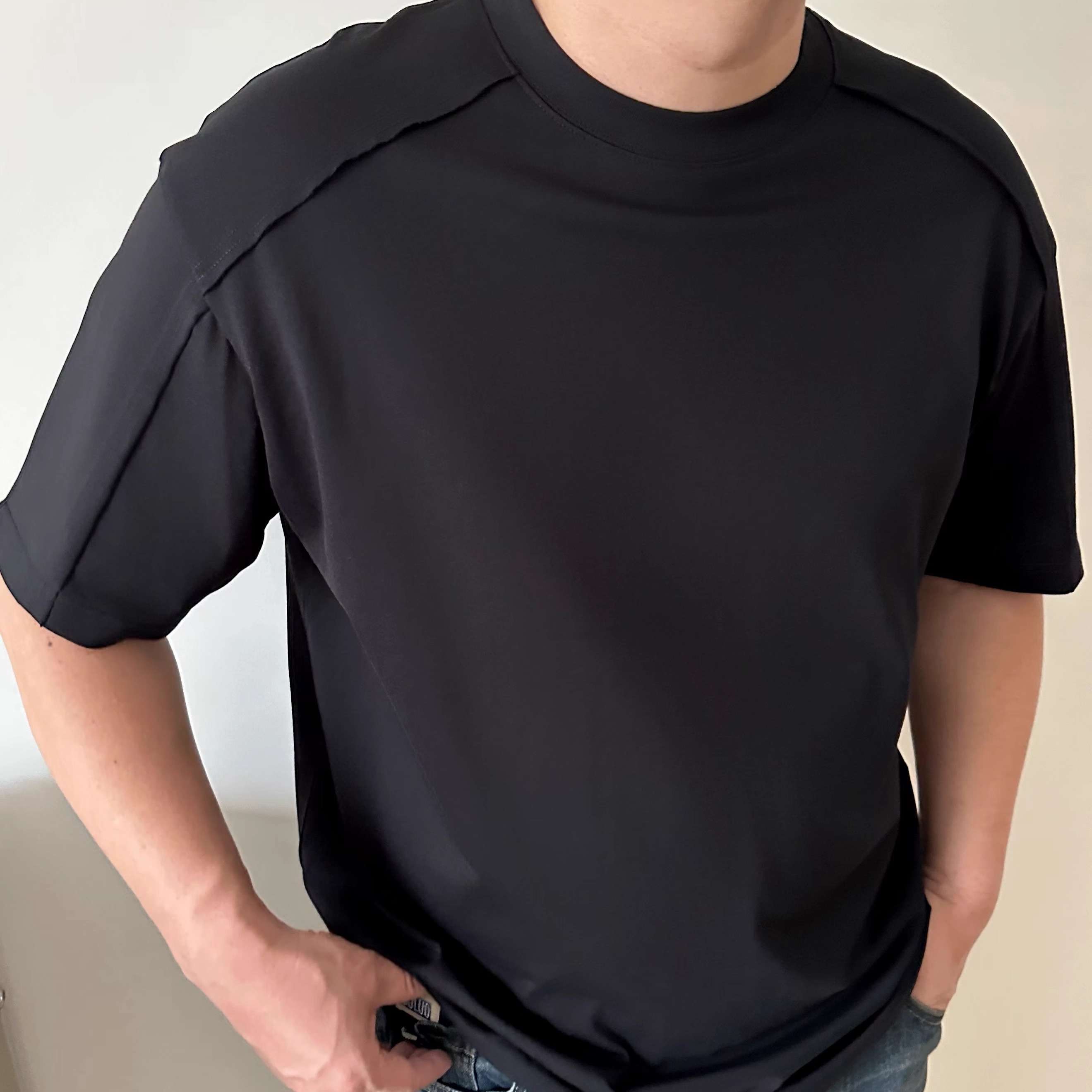 大依无忧大码男装夏季拼接纯色打底加肥加大圆领男士短袖t恤半袖