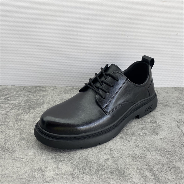 系带圆头牛皮商务休闲皮鞋男单鞋