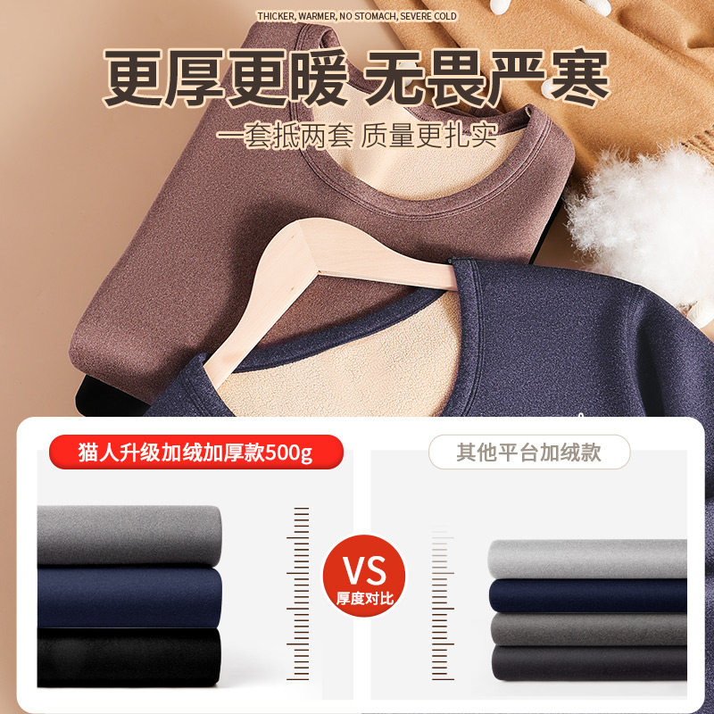 猫人保暖内衣套装男士秋冬季巨厚线衣裤正品加绒加厚秋衣秋裤男款
