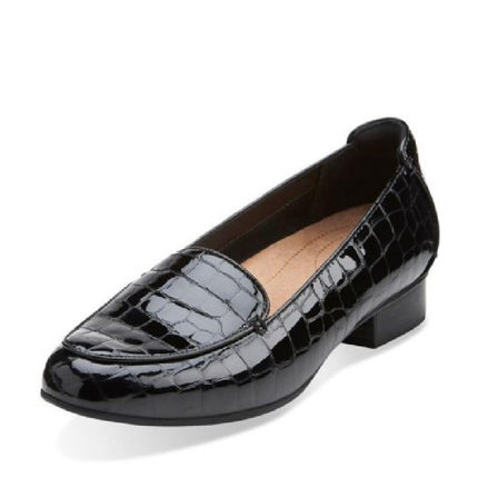 Clarks/其乐女鞋瓢鞋皮鞋鳄鱼纹低跟粗跟单鞋商务正品26113458