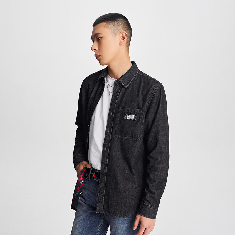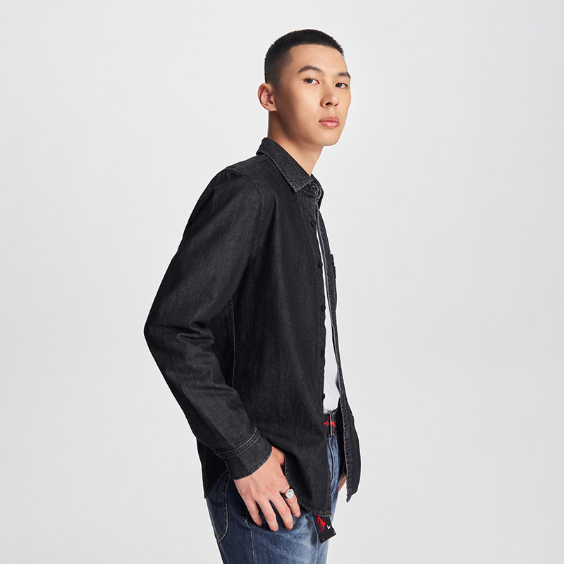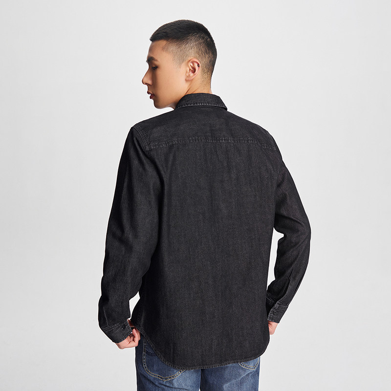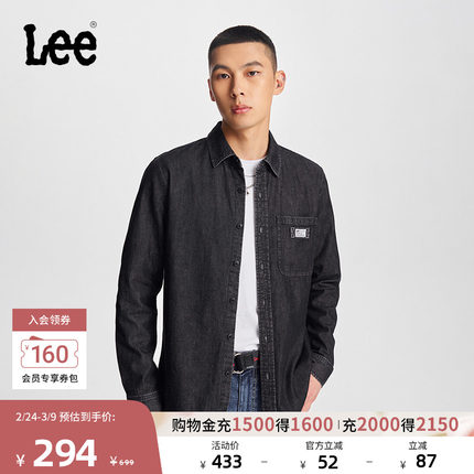 Lee标准版翻领工装风翻领黑色男长袖牛仔衬衫休闲潮LMT009060100