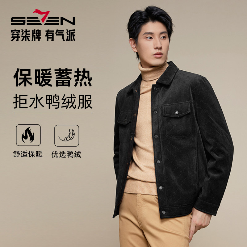 【拒水鸭绒】柒牌工装羽绒服男2025冬季新款时尚百搭翻领保暖外套