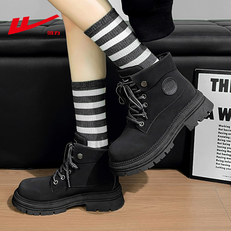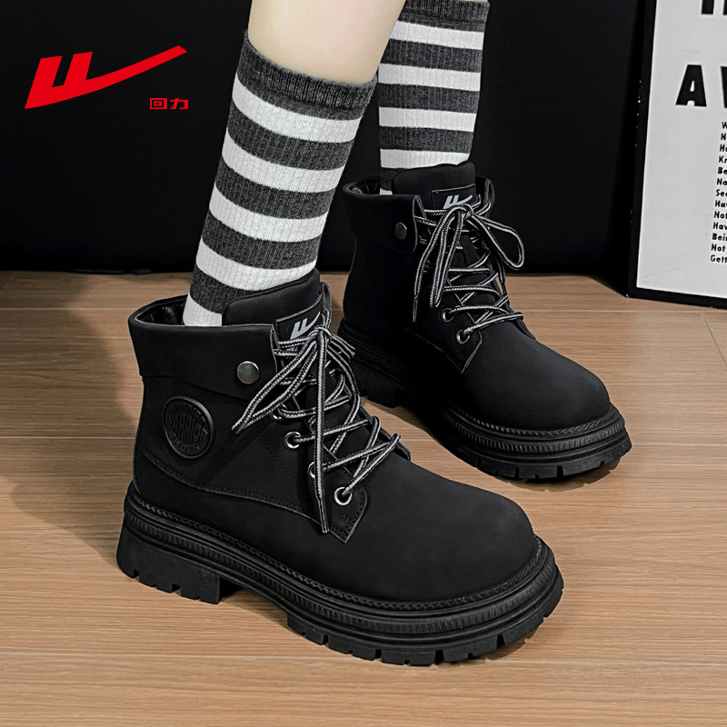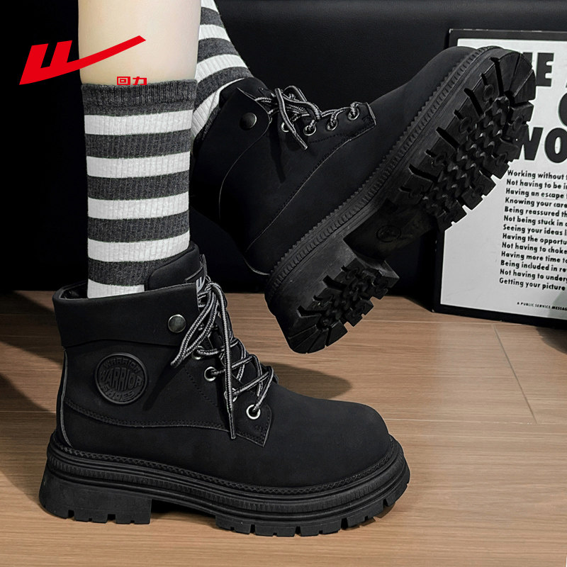 回力时尚英伦风黑色厚底马丁靴女