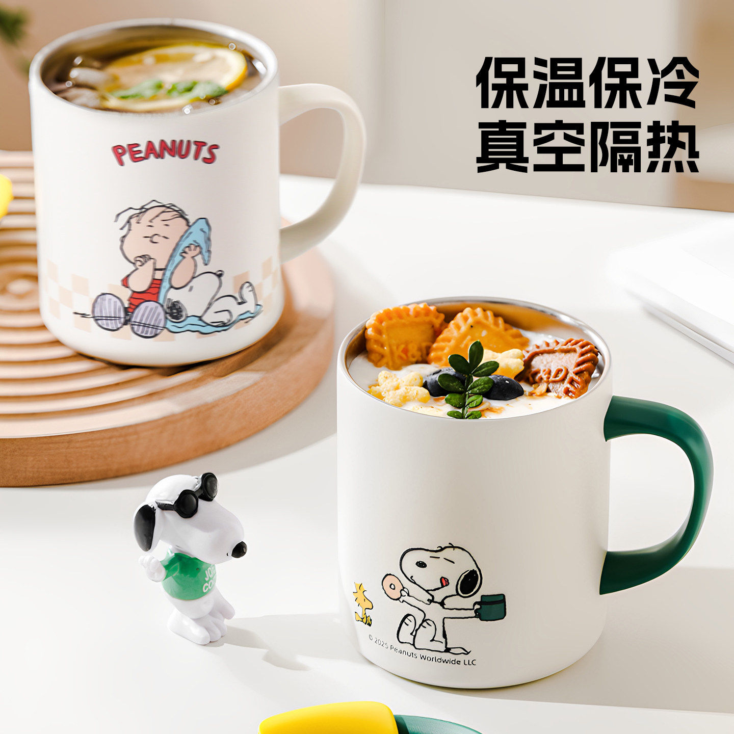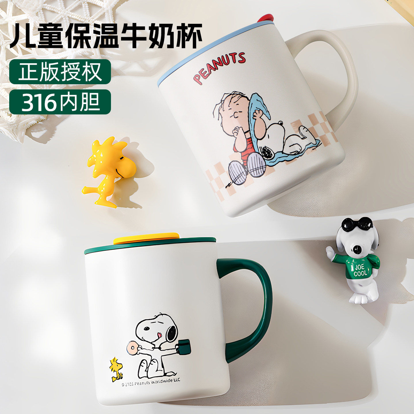 史努比儿童水杯家用316不锈钢牛奶杯带刻度保温马克把手杯吸管杯