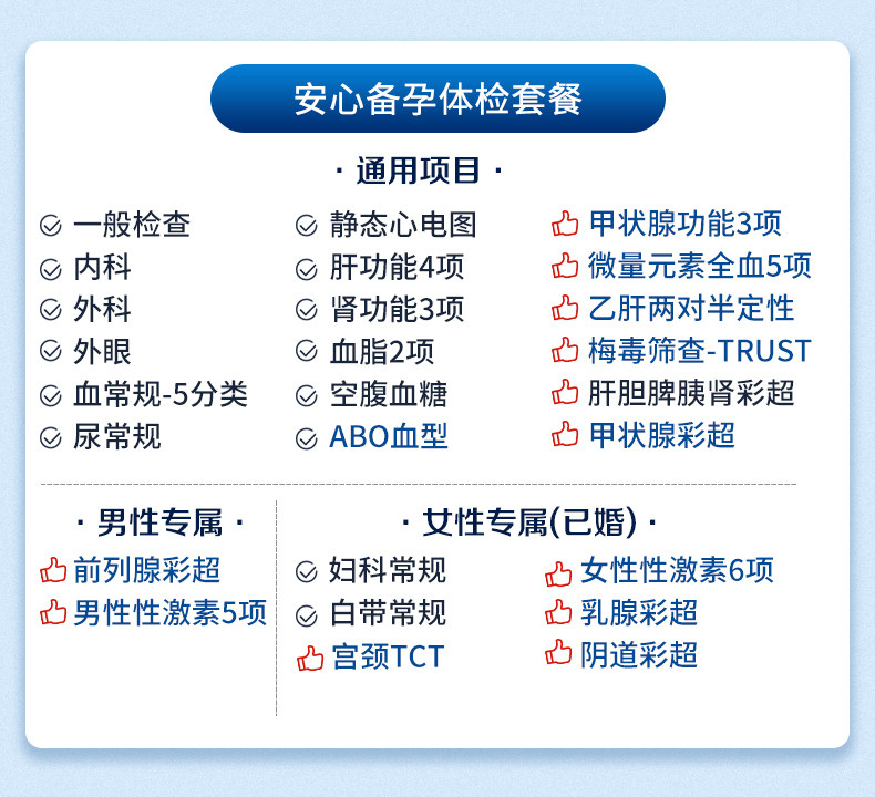 美年大健康男女性安心备孕体检套餐 孕前性激素全身婚体检