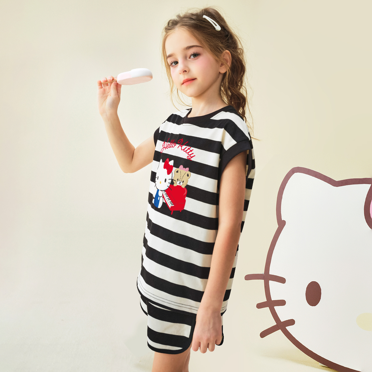 HelloKitty女童套装2025新款儿童宝宝女孩夏季薄款中大童T恤短裤