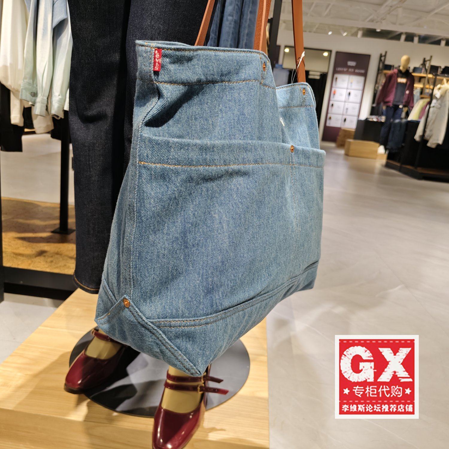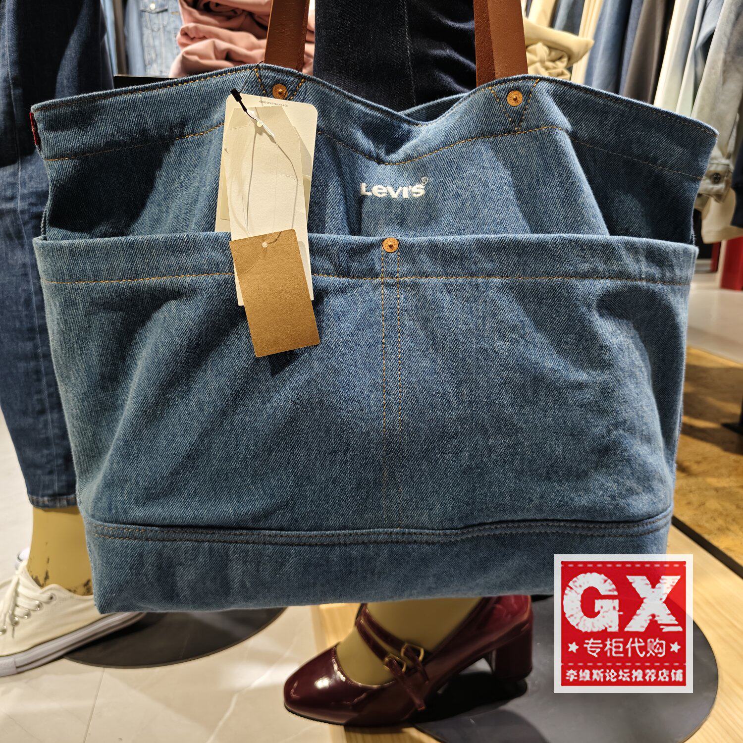 正品levis李维斯男女款潮流浅色牛仔大手提包单肩包D7959-0002