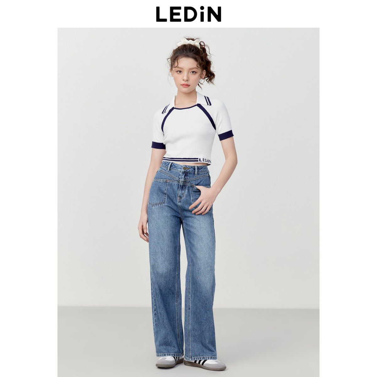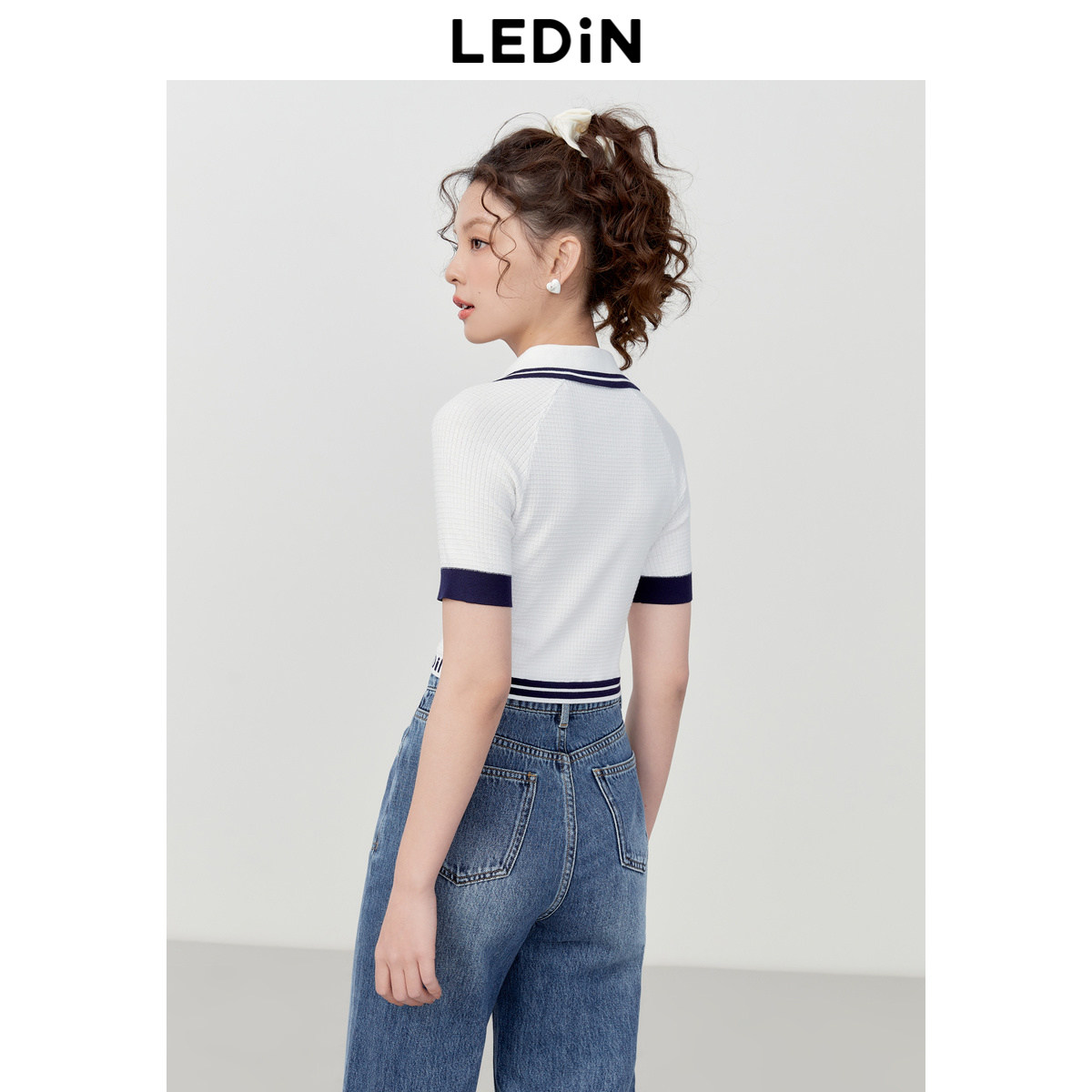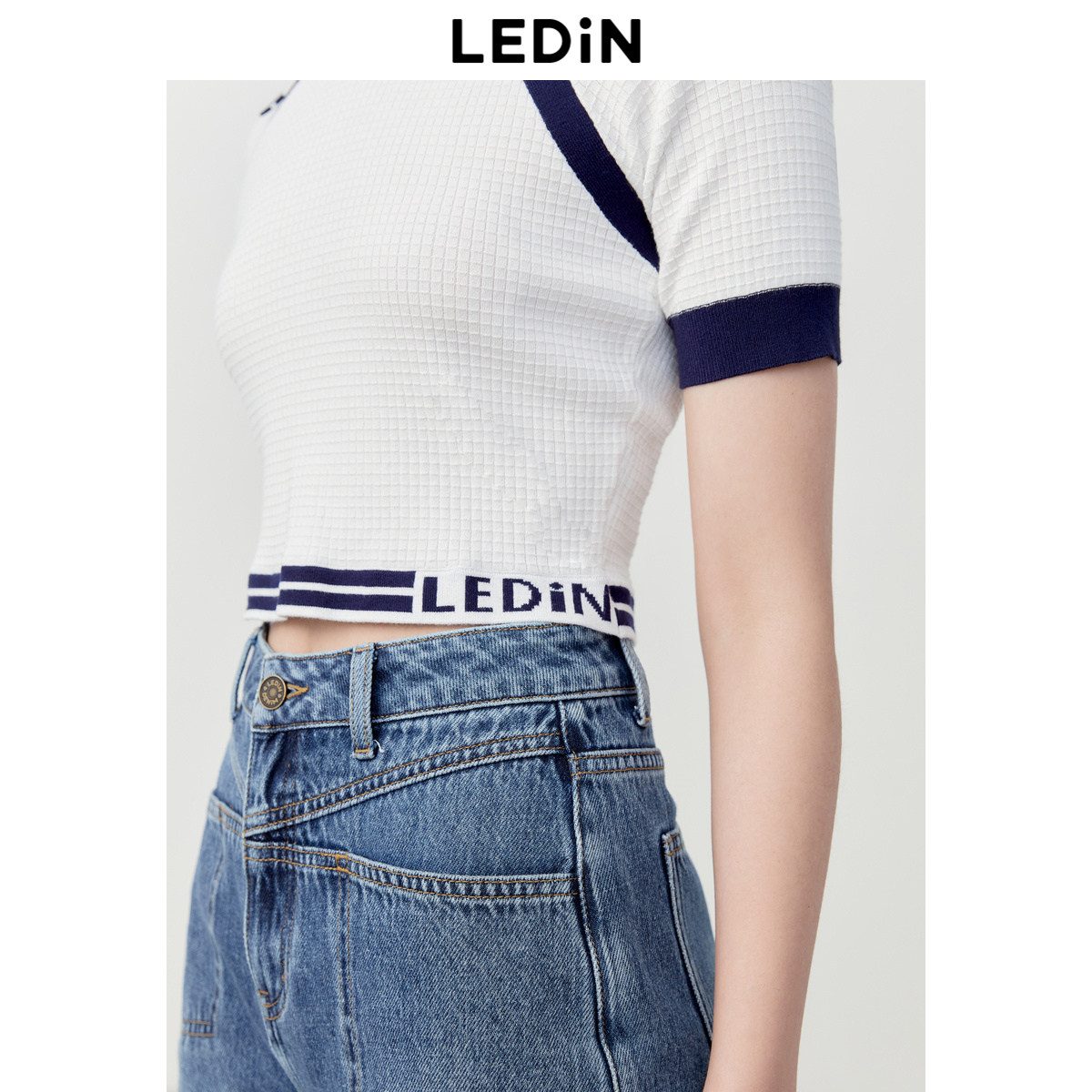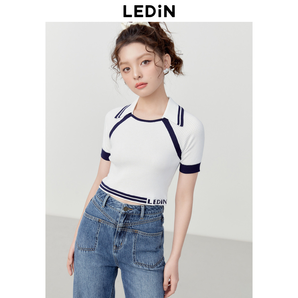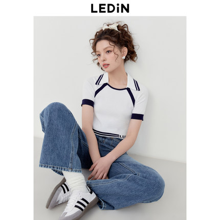 乐町撞边插肩袖针织短袖女夏季短款修身圆领POLO衫T恤
