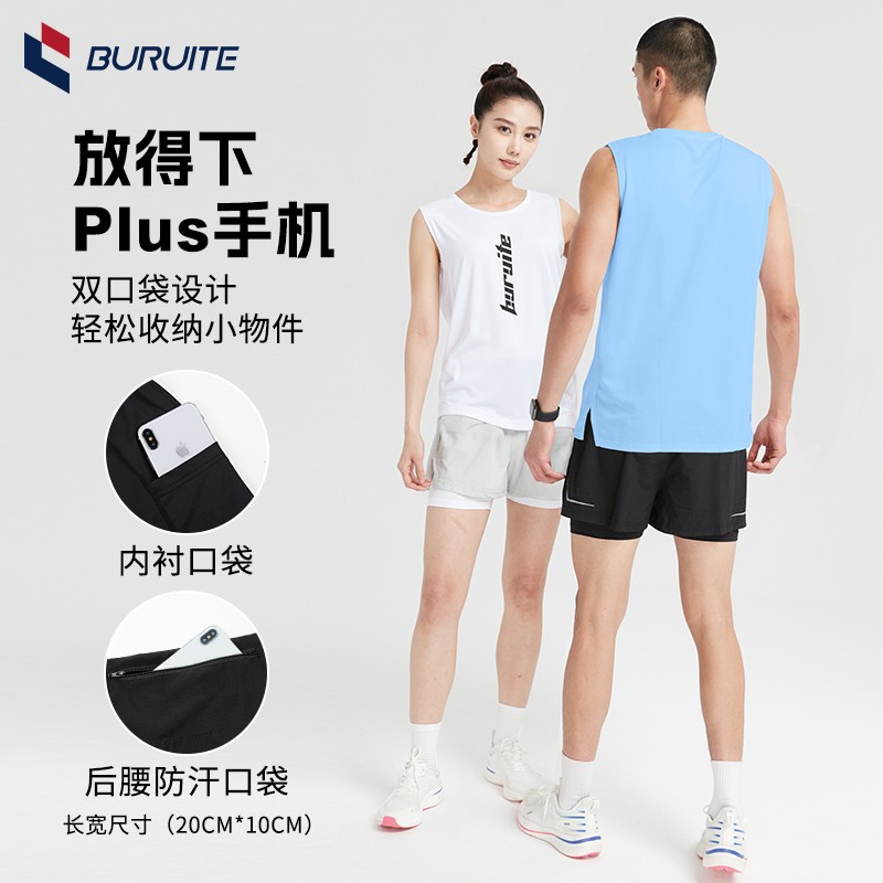 男士跑步运动背心套装双影裤抗菌快干情侣款夏季宽松短裤训练清凉