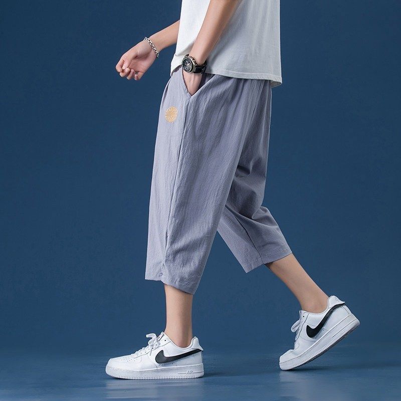 七分裤男款夏季宽松亚麻短裤薄款棉麻裤子男士7分裤直筒休闲