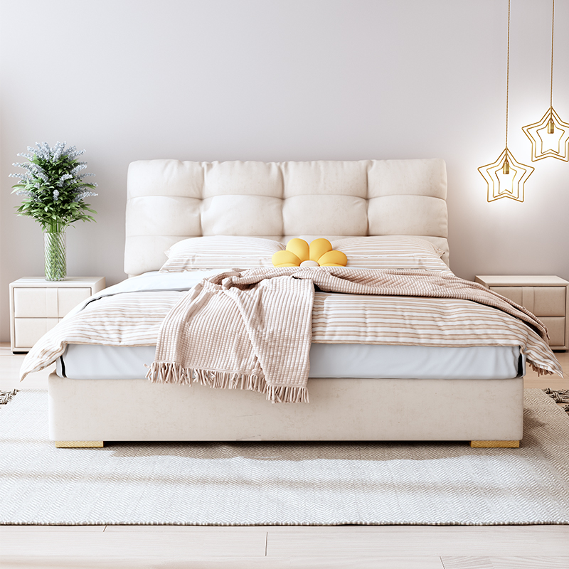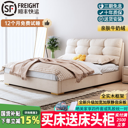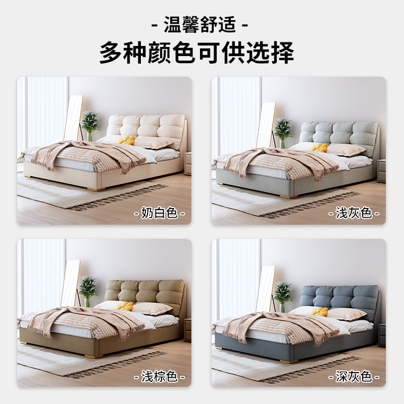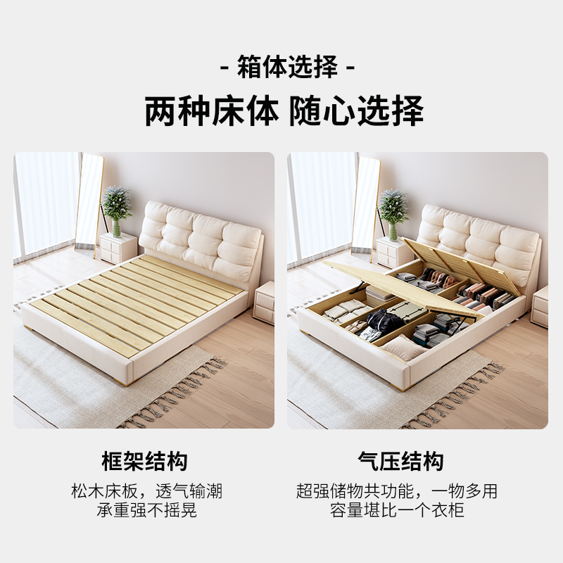 法式奶油风云朵床简约现代轻奢双人床网红床科技布主卧床布艺床