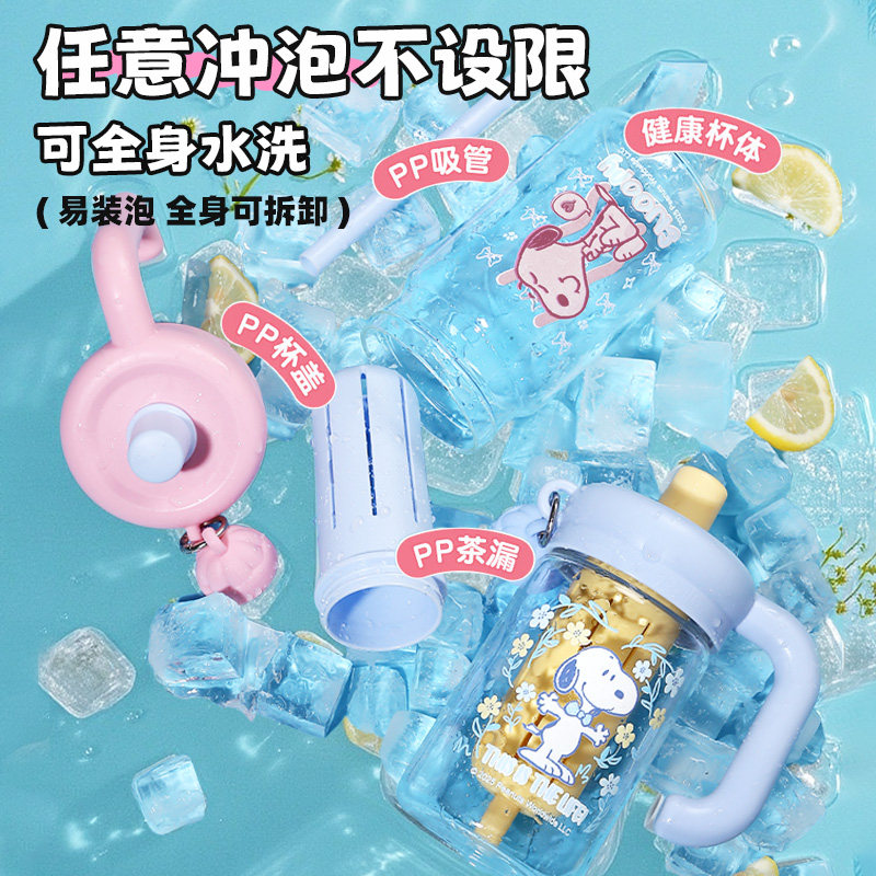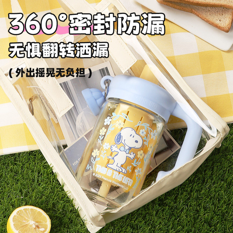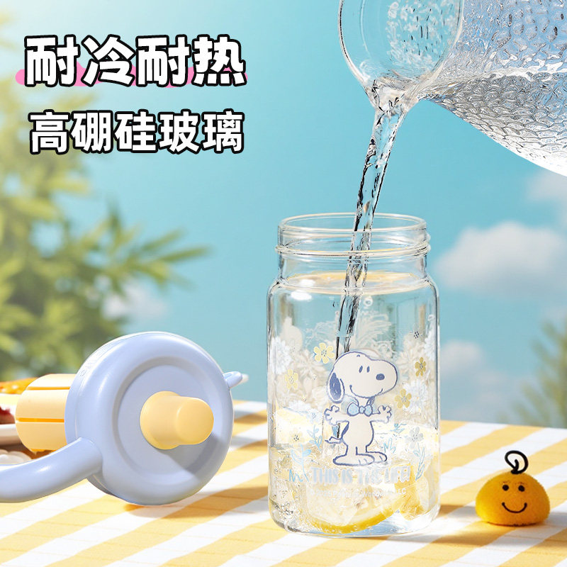 史努比玻璃杯女生夏天可爱上班族家用吸管水杯耐热泡花茶冰霸杯子