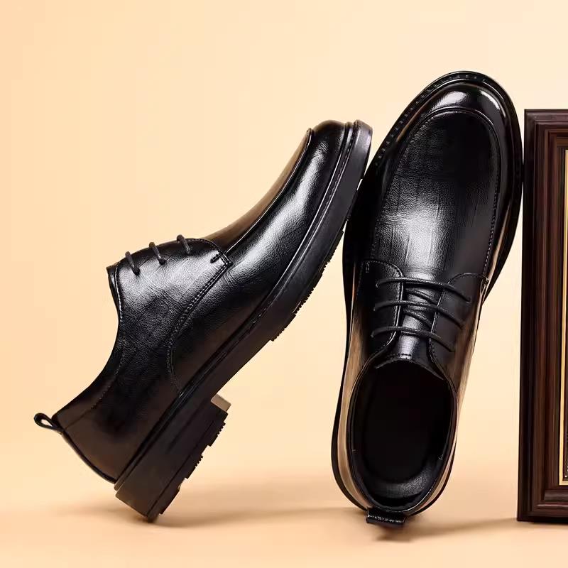 棕色鞋男商务正装尖头英伦韩版西装厚底系带年内增高皮鞋1011e