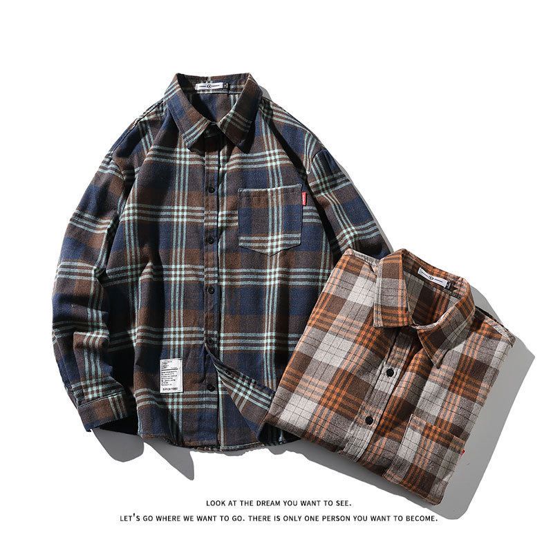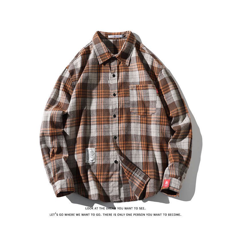 男装春秋季新款长袖格子衬衫男士韩版时尚衬衣翻领宽松衬衣青少年