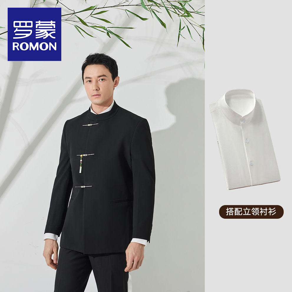 罗蒙新中式西服套装男士立领中山装新郎订婚结婚礼服中国风唐装NX