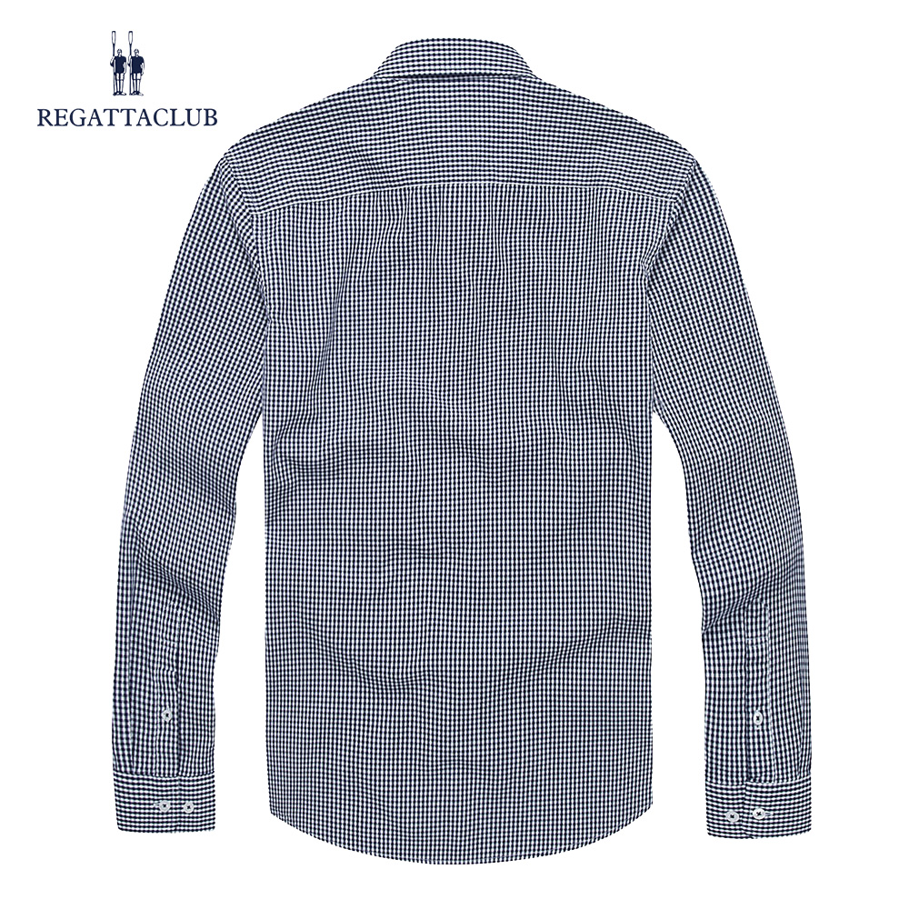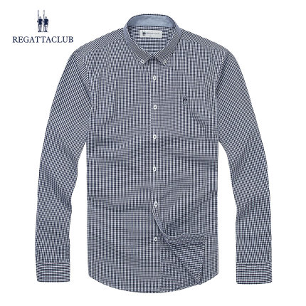 RegattaClub春季纯棉质面料衬衫直筒休闲小格子衬衣男士长袖衬衫