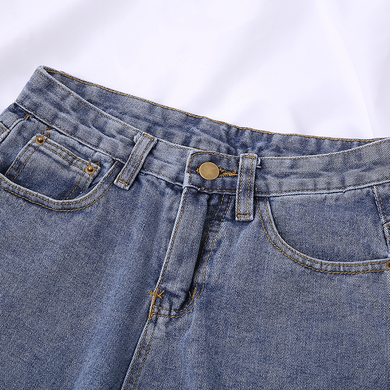 牛仔短裤2021新款裤子女夏季薄款高腰宽松五分裤直筒港味港风中裤