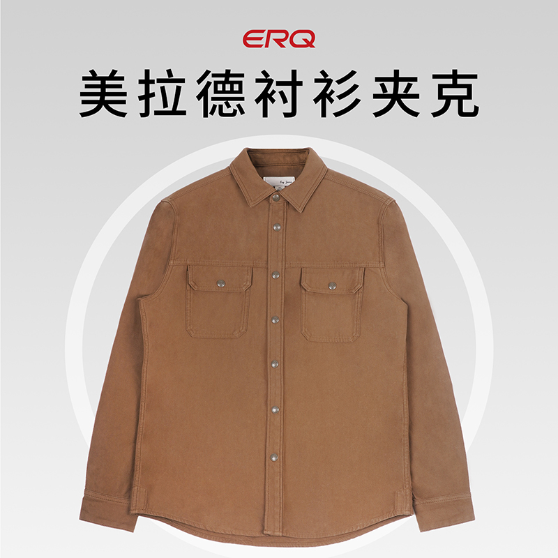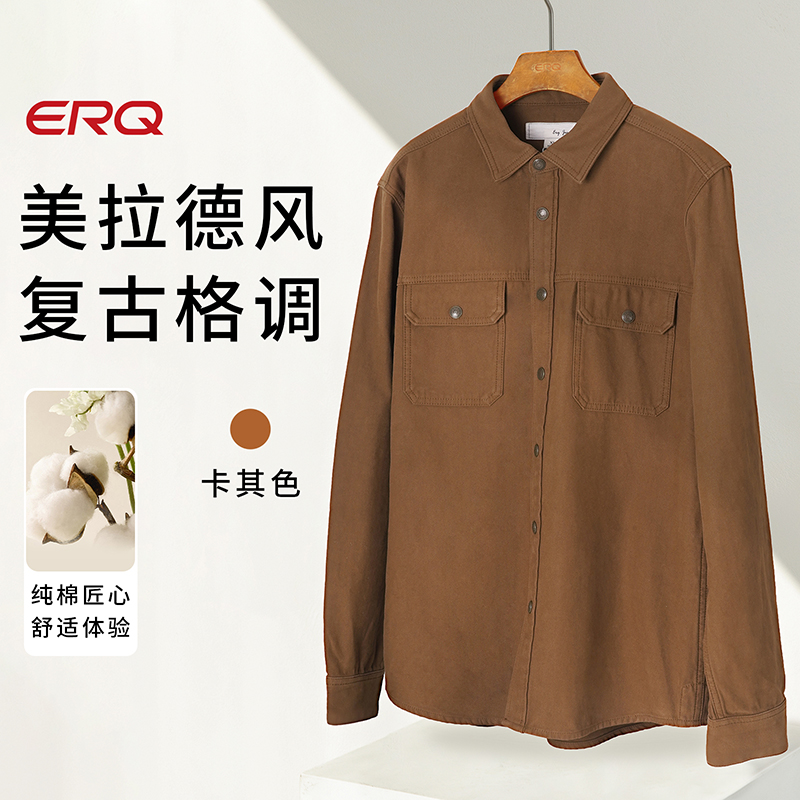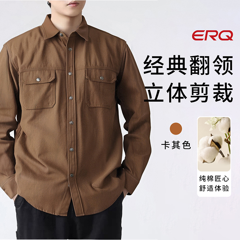 ERQ男士翻领衬衫夹克外套工装美式长袖休闲时尚春秋复古户外商务