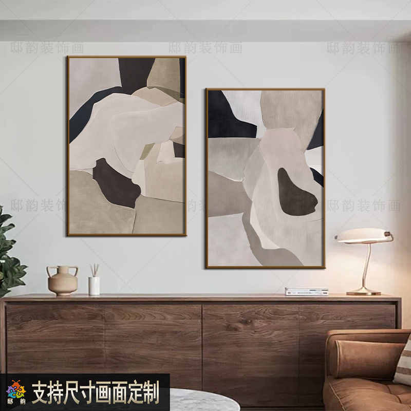 侘寂风客厅沙发背景墙装饰画民宿酒店卧室床头挂画玄关无框画定制