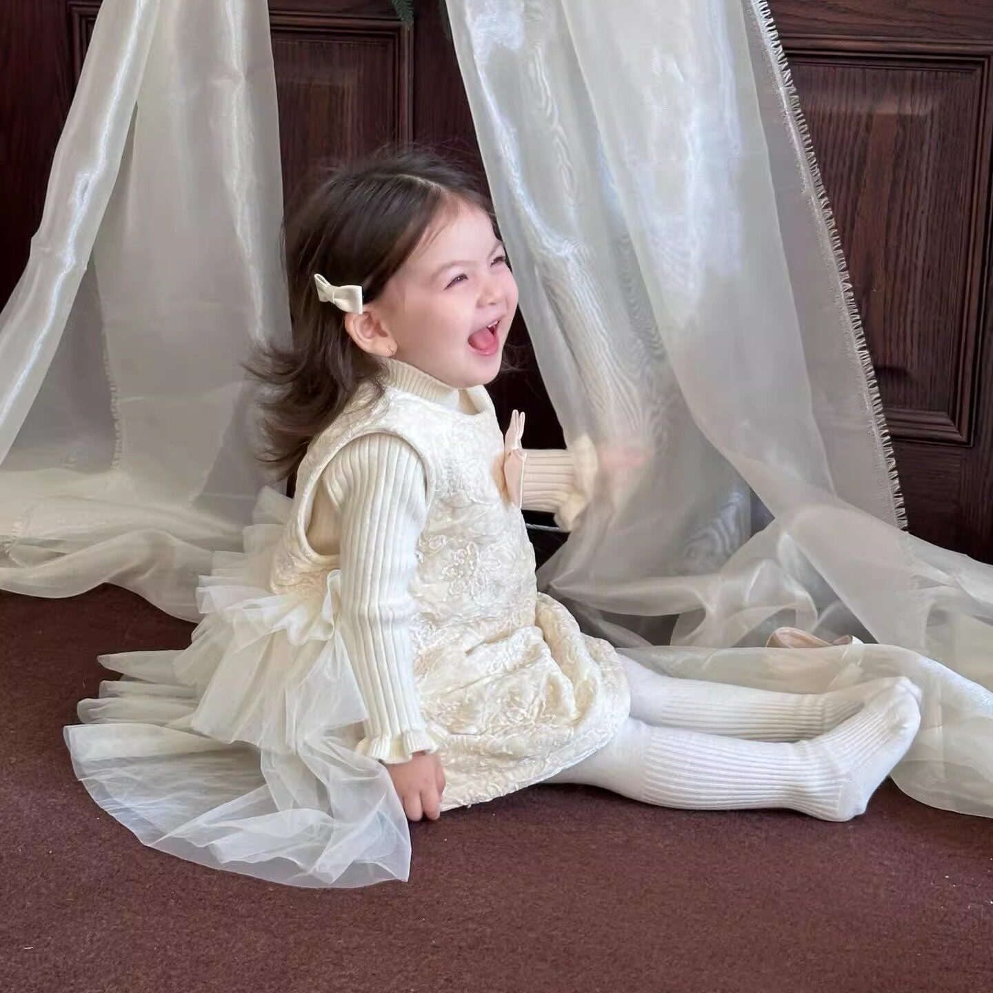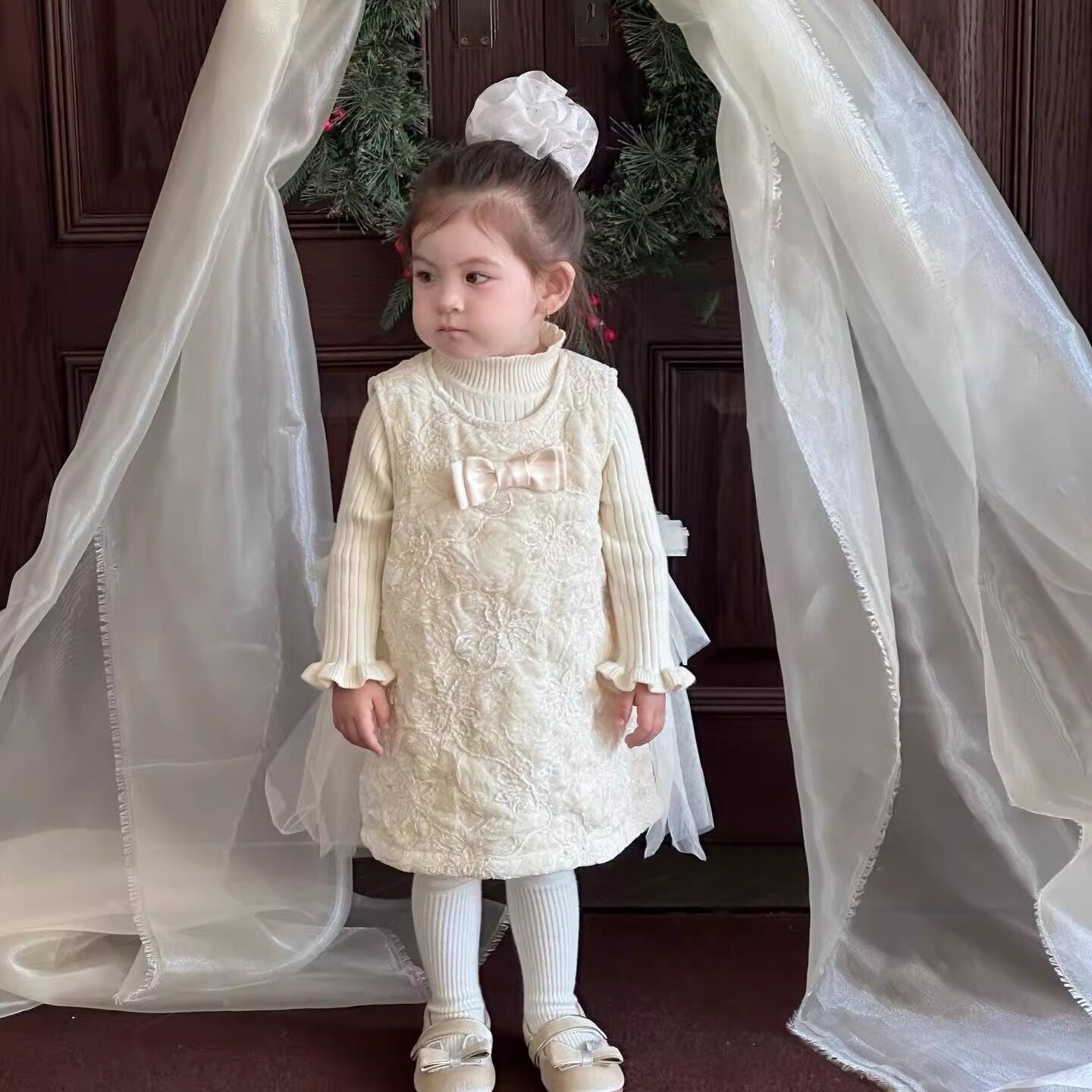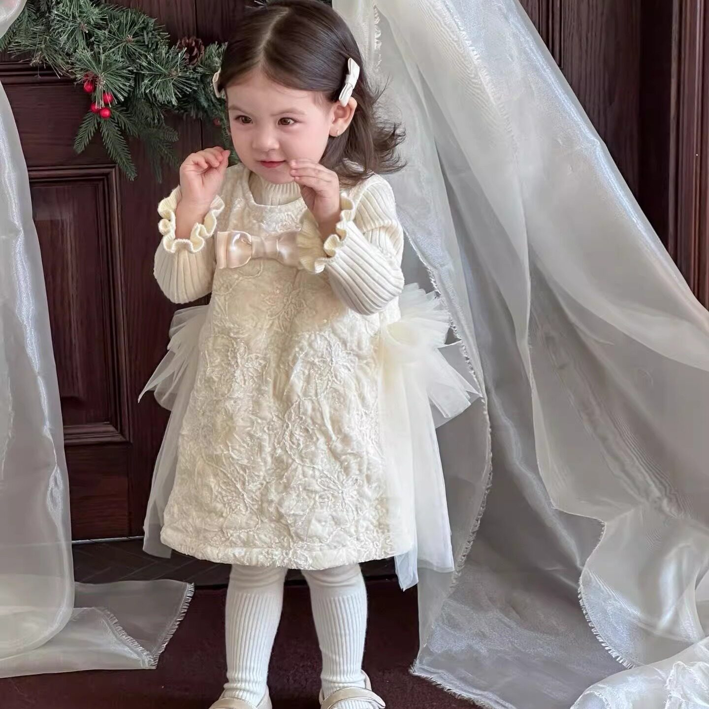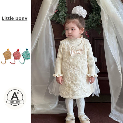 女宝宝韩版冬季加厚连衣裙女童网纱加绒背心裙生日礼服公主连衣裙