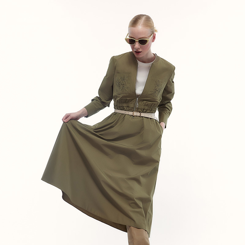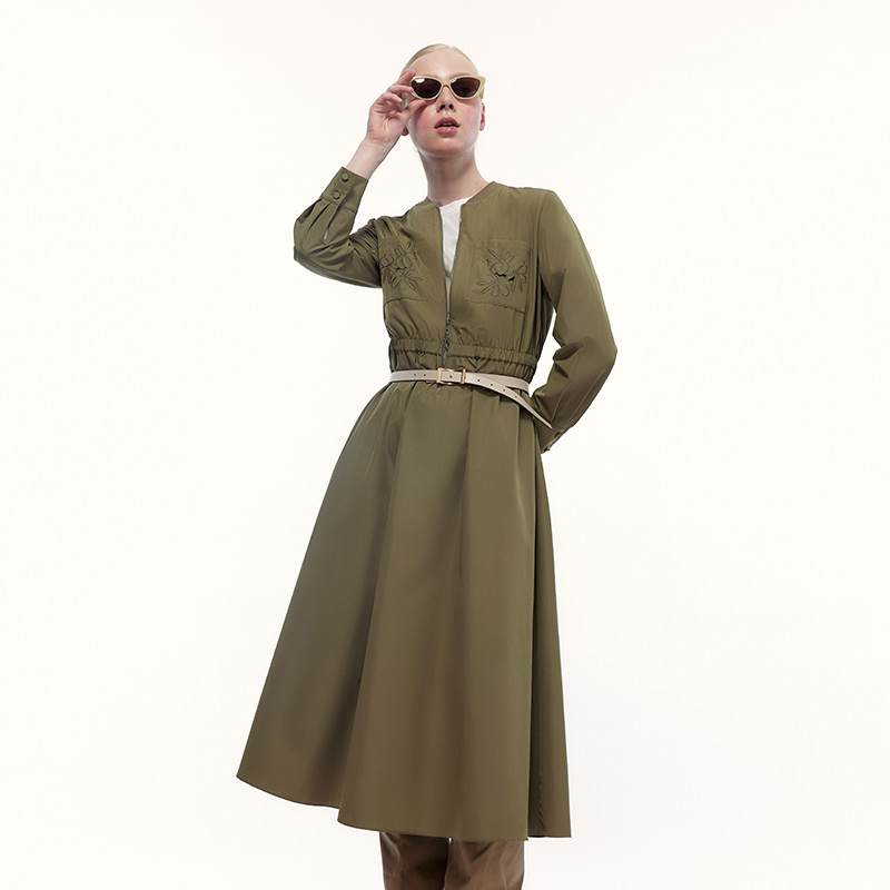 艺之卉渌波色法式刺绣中长款长袖收腰连衣裙女2025秋新款