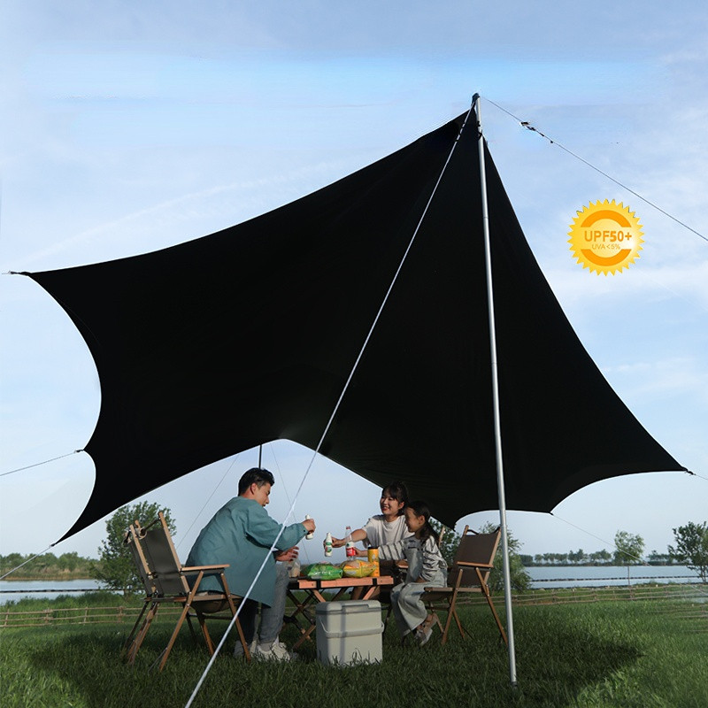 黑胶防晒天幕帐篷户外遮阳棚防风雨露营装备野营野餐桌椅八角蝶形