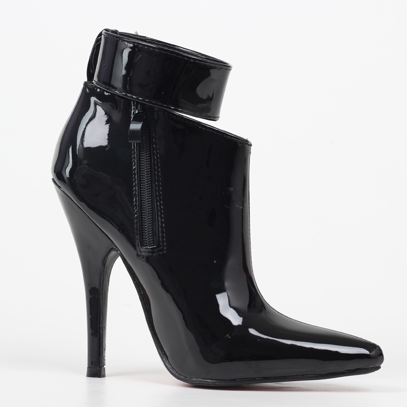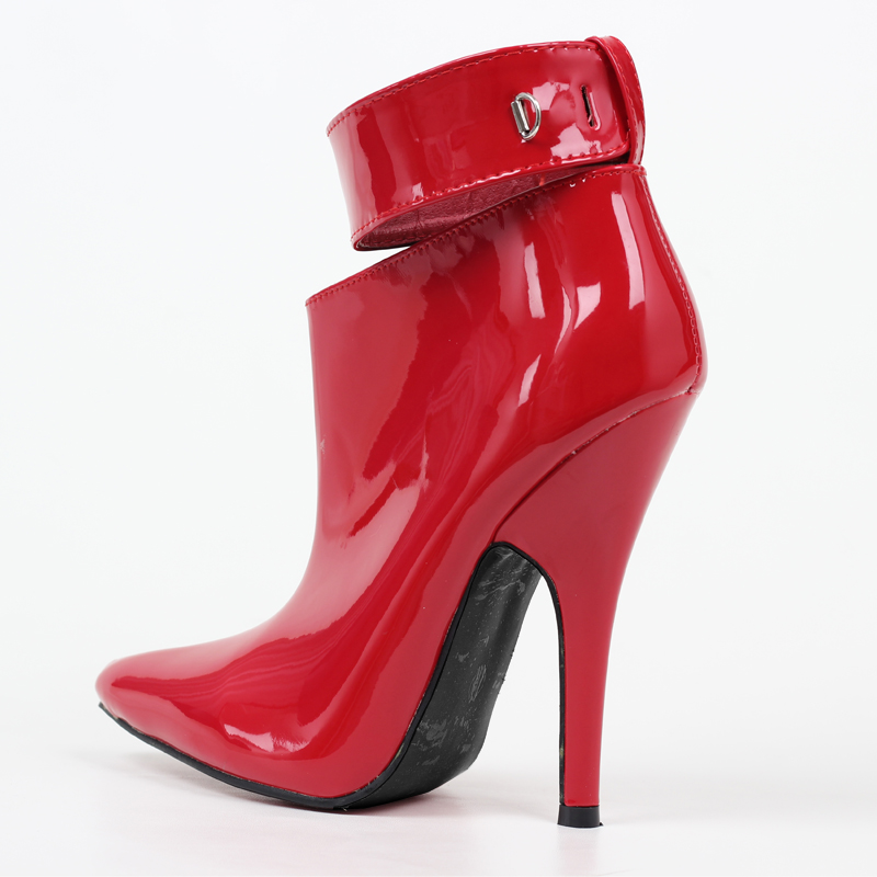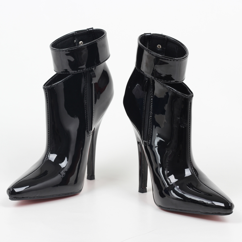 BDSM男士大码高跟12厘米细高跟带锁漆皮丝袜尖头漆皮女王鞋