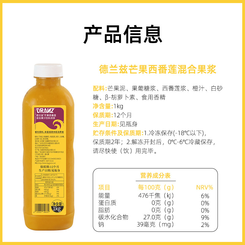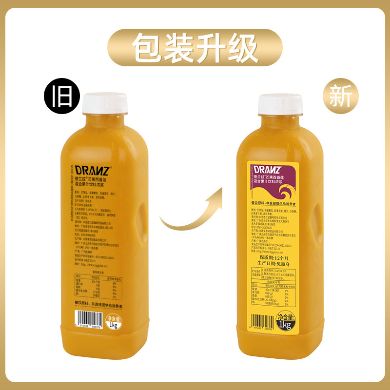 德兰兹芒果西番莲百香果浓浆饮料奶茶咖啡专用芒果冰沙乐浓缩果汁