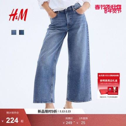 HM女装牛仔裤春季阔腿版型潮流通勤时尚高腰微弹棉质长裤1236909