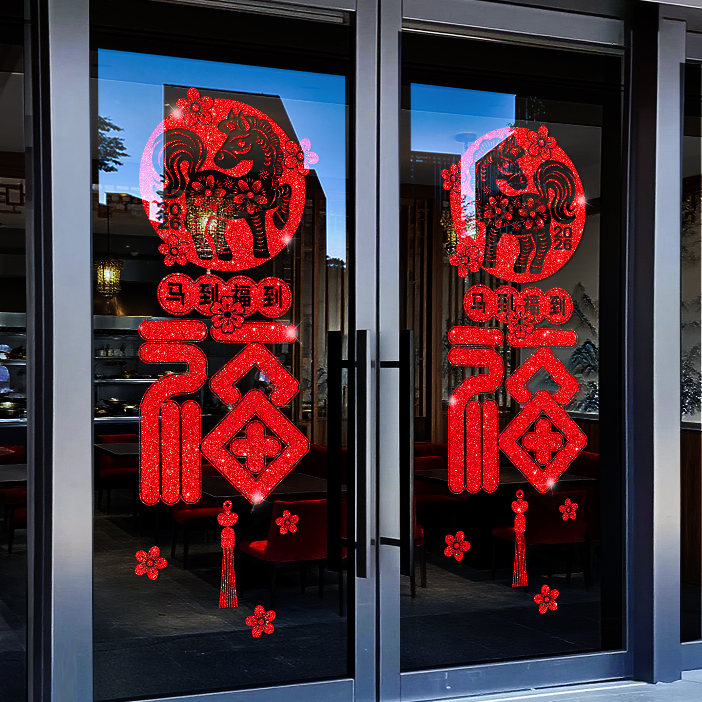 马年装饰品福字门贴纸新年店铺橱窗玻璃贴画春节场景布置装扮用品