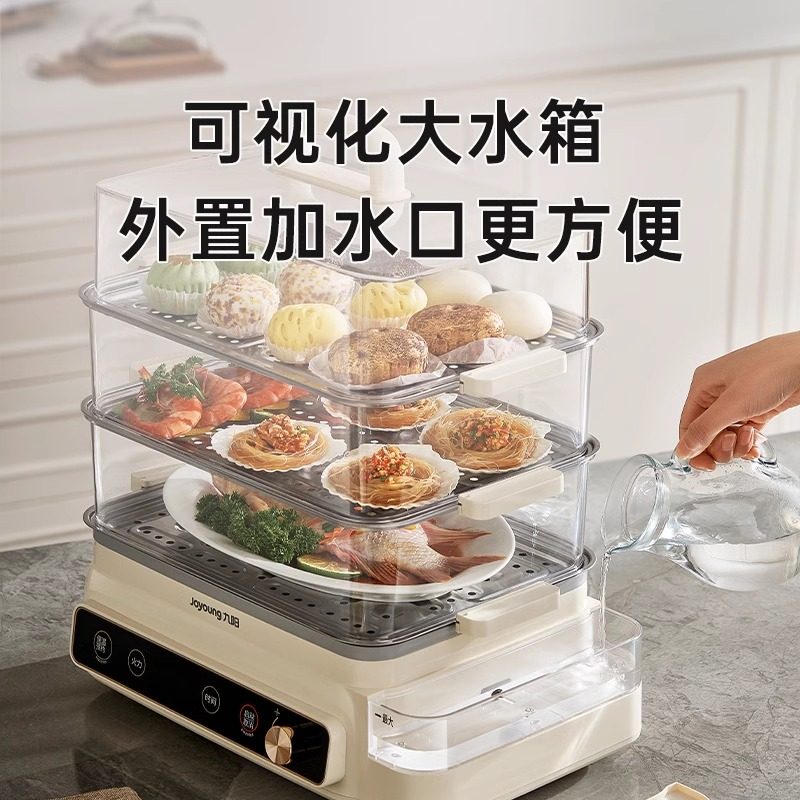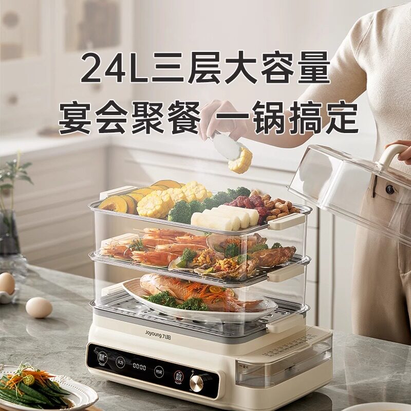 九阳电蒸锅多功能家用三层不锈钢大容量定时蒸箱早餐机一体机新款