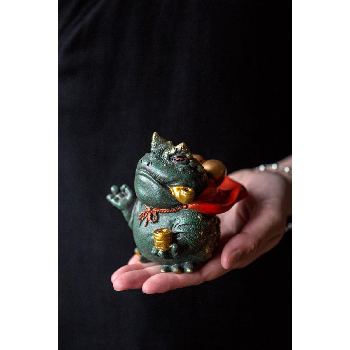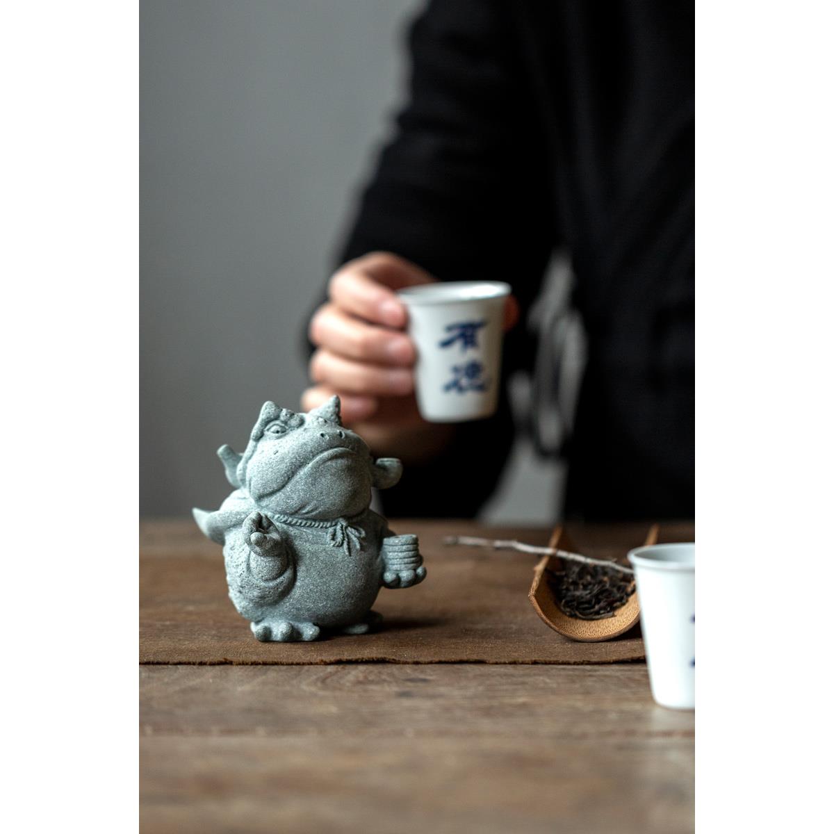 青砂石掐指一算中式创意国潮逗兽记茶宠鱼缸造景鱼宠桌面摆件金蟾