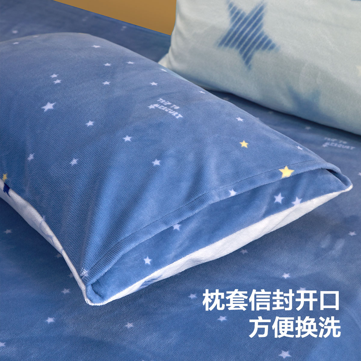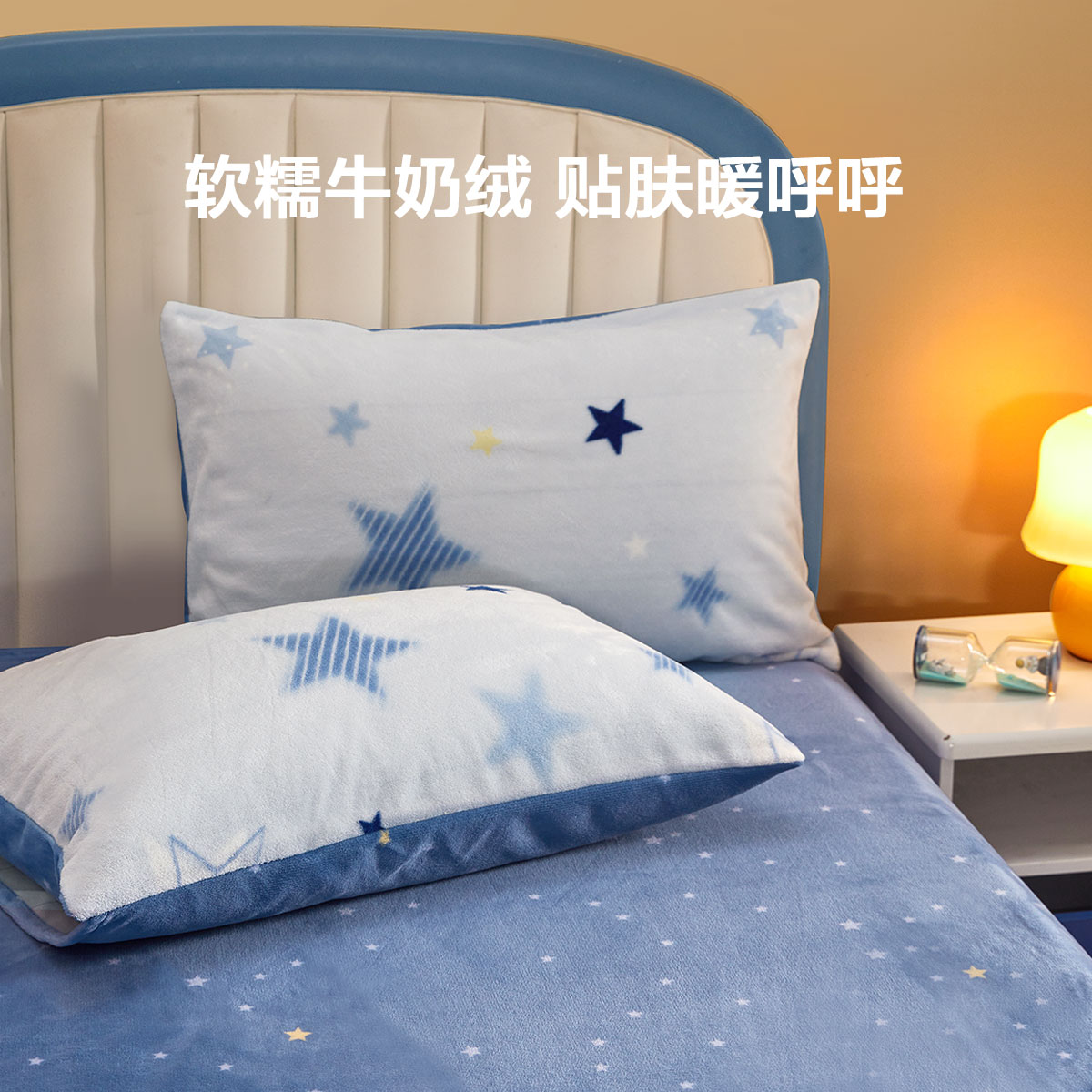水星家纺儿童抗静电牛奶绒对枕套