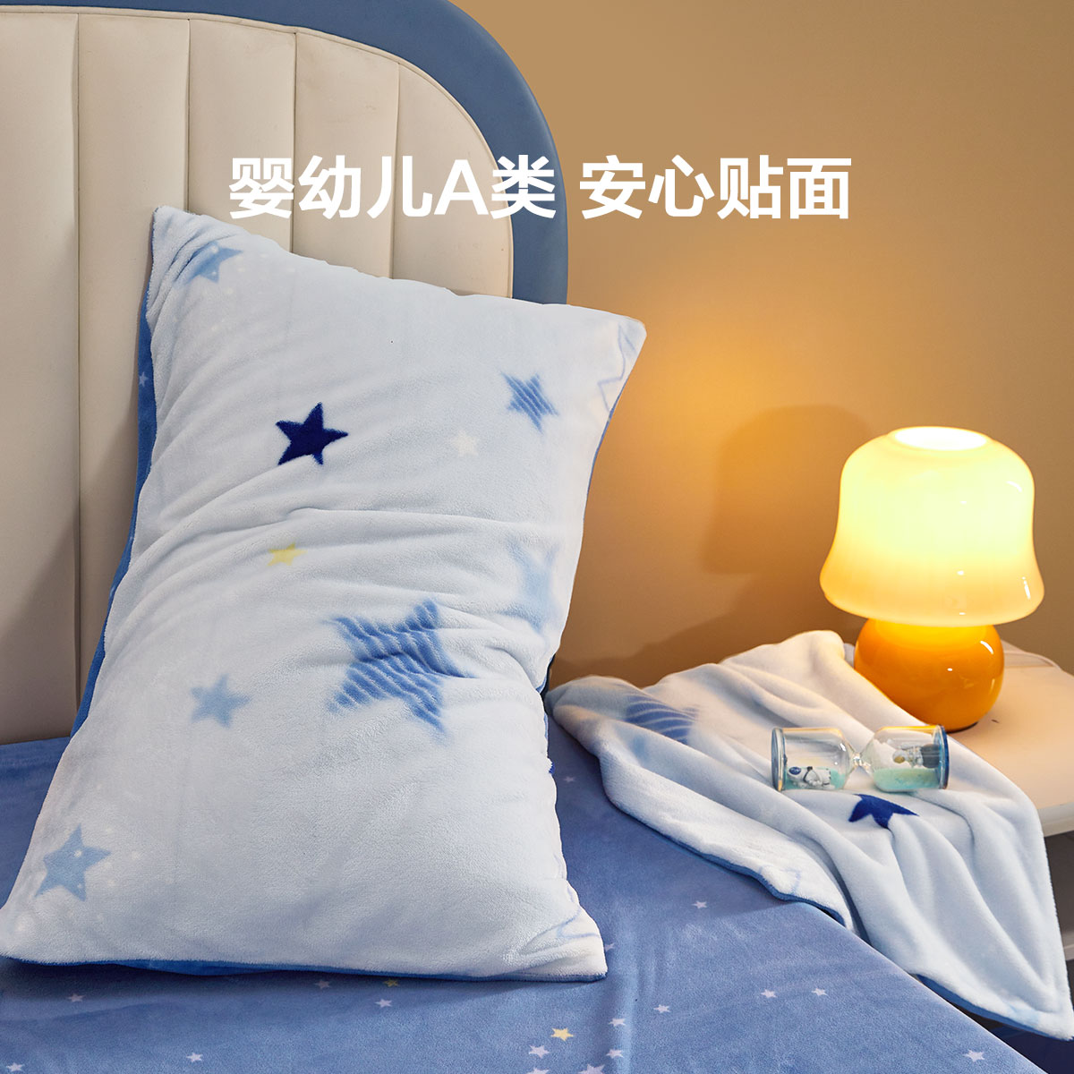 水星家纺儿童抗静电牛奶绒印花对枕套母婴A类抑菌暖绒枕头套床品