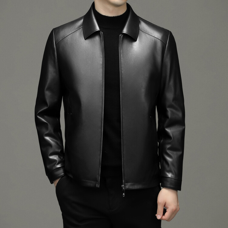 皮尔卡丹真皮皮衣男外套绵羊皮商务中年爸爸秋装春秋季新款皮夹克