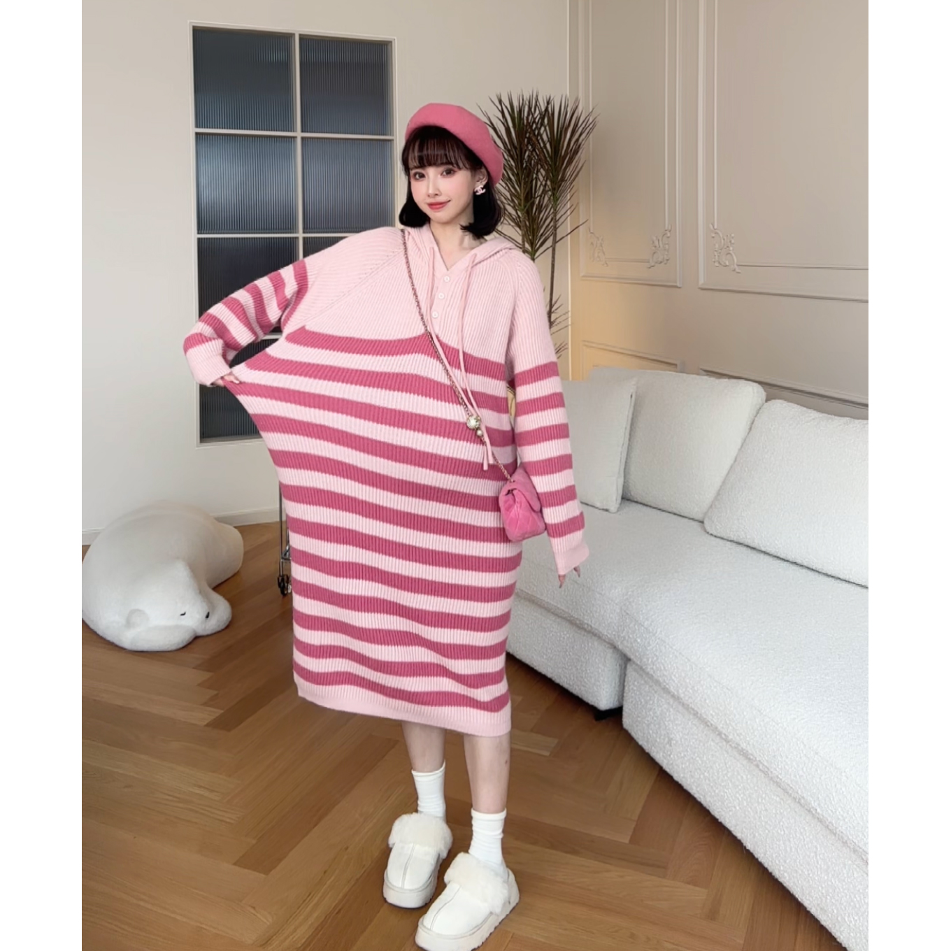 【草莓牛乳】娜娜的孕期穿搭针织连衣裙孕妇装2025秋季新款可哺乳