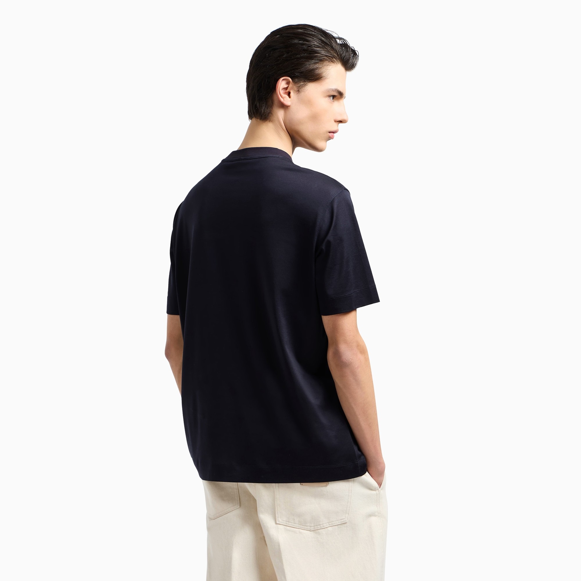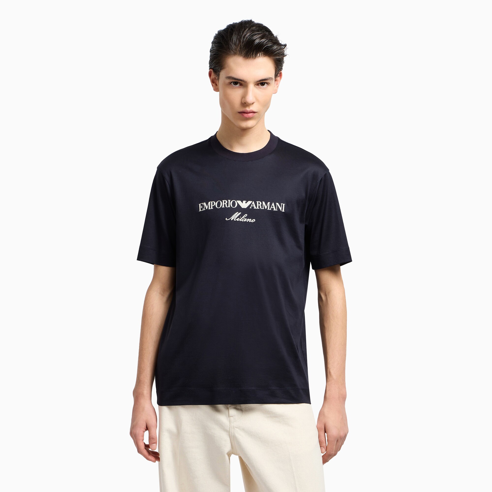 Armani/阿玛尼EA 男士刺绣鹰标丝光棉短袖T恤 EM001033 AF10017
