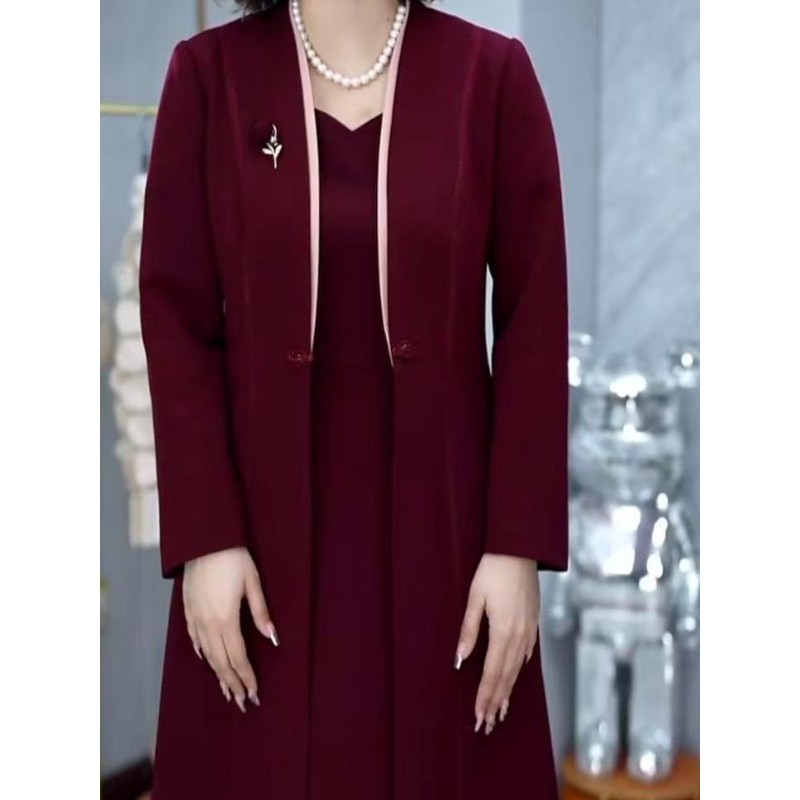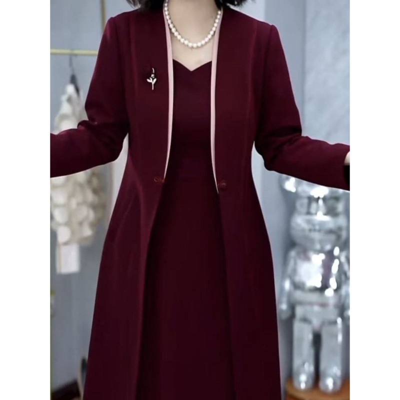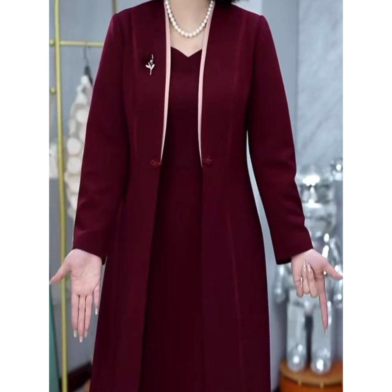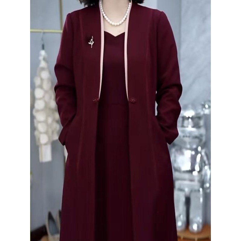 高级精纺婚宴喜宴婆婆妈妈礼服2025秋季新款收腰风衣外套裙子套装