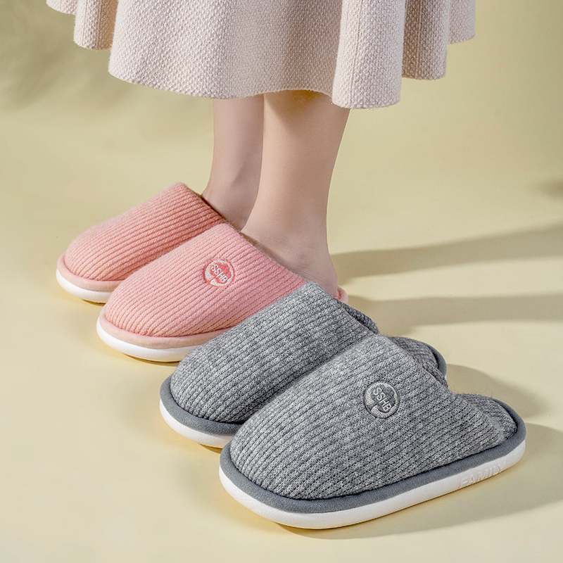 快鹿乳胶针织棉拖鞋防滑厚底保暖